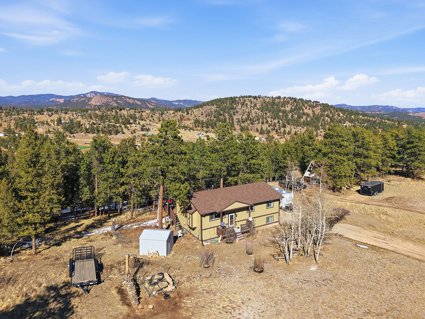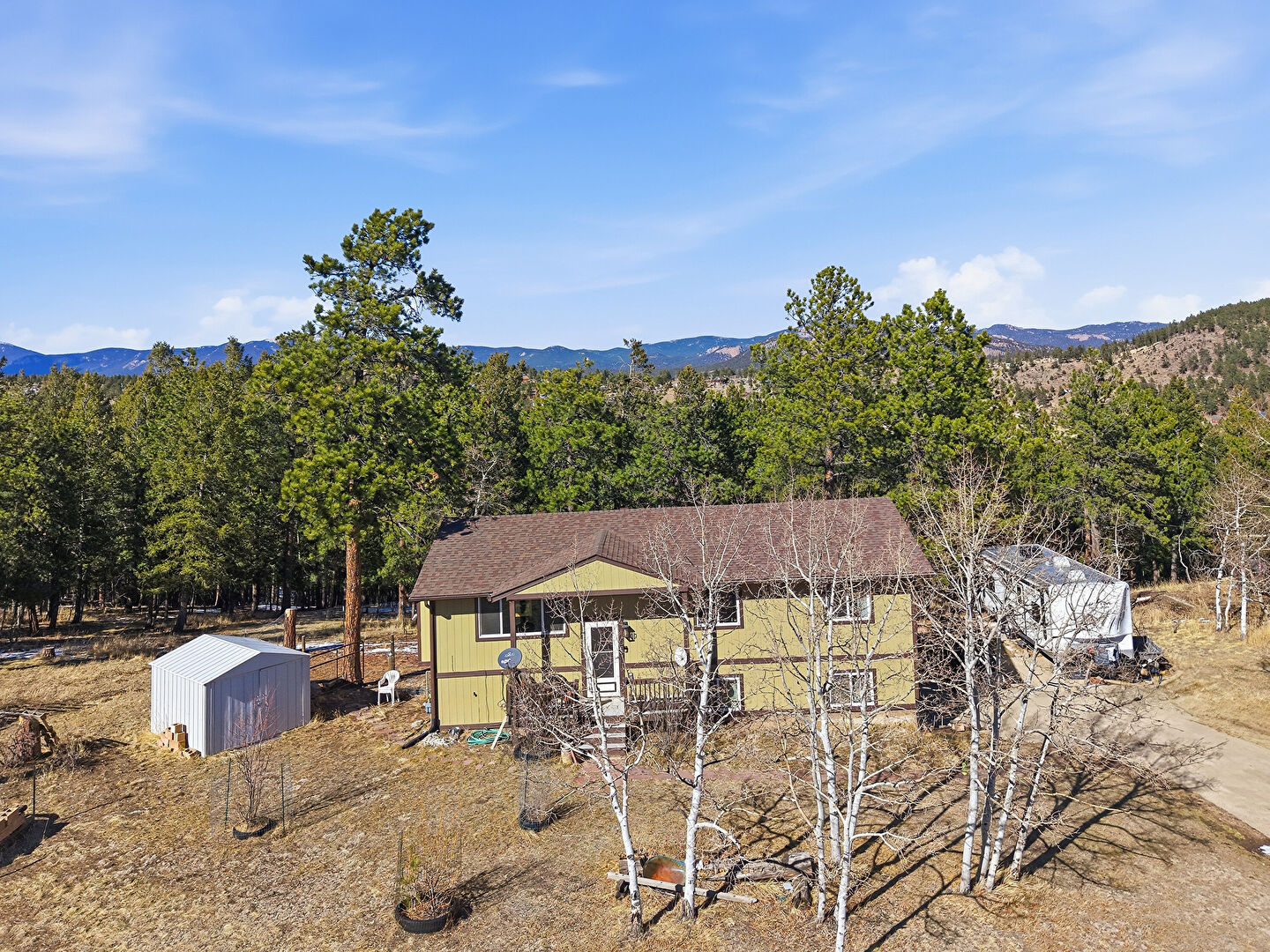 Deck, Driveway, Mountain View, Outdoor Structure, Pad Mount Transformer, Satellite Dish, Shed, Shingle Roof, Stoop, Vertical Siding, Woods View, Mountain View, Outdoor Structure, Vertical Siding