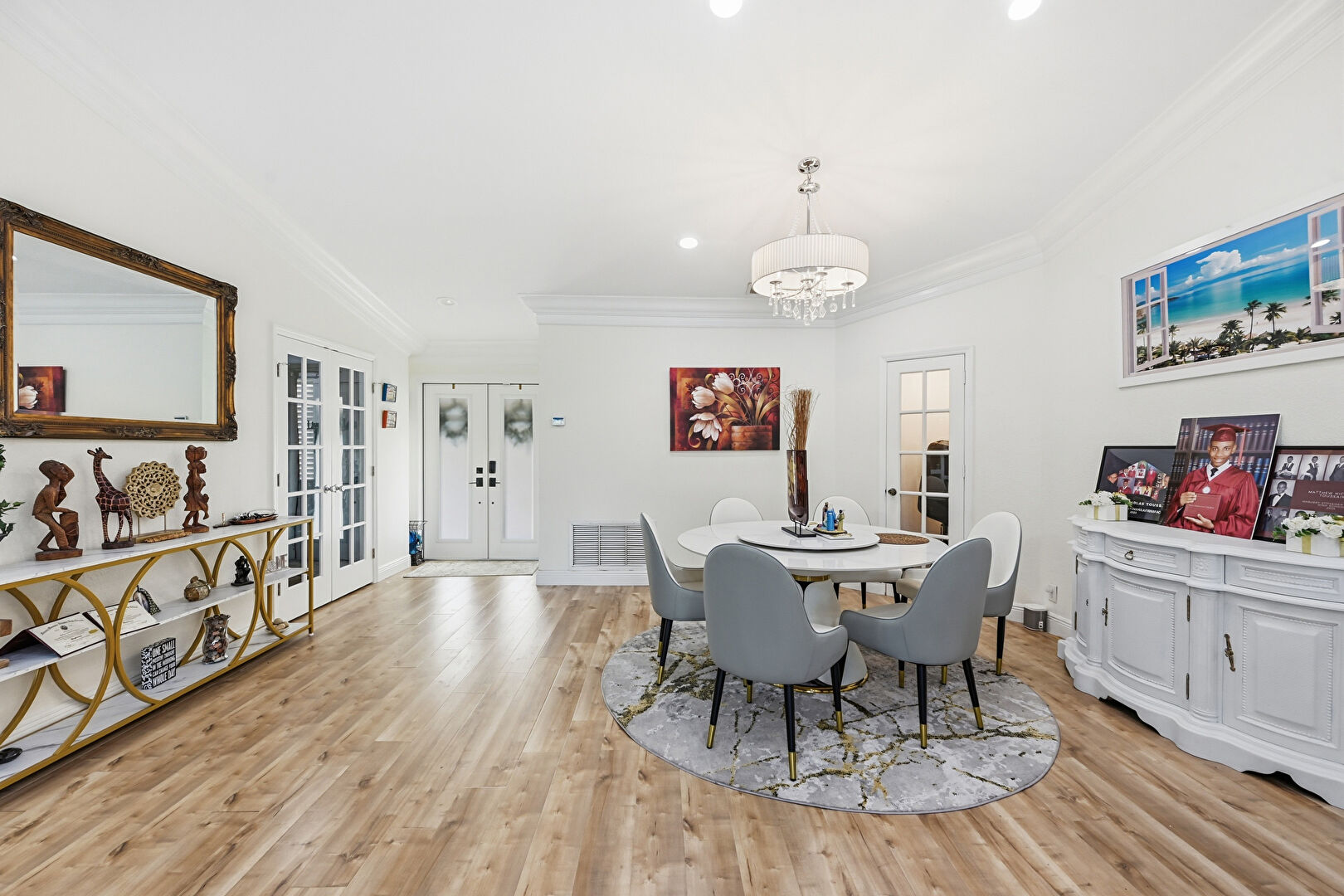 Baseboards Wall, Crown Molding, Double Oven, Drywall, French Doors, L Shaped Kitchen, Natural Light, Notable Chandelier, Recessed Lighting, Vaulted Ceiling, Vent, Wood Finish Floor, Crown Molding, Recessed Lighting, Wood Finish Floor