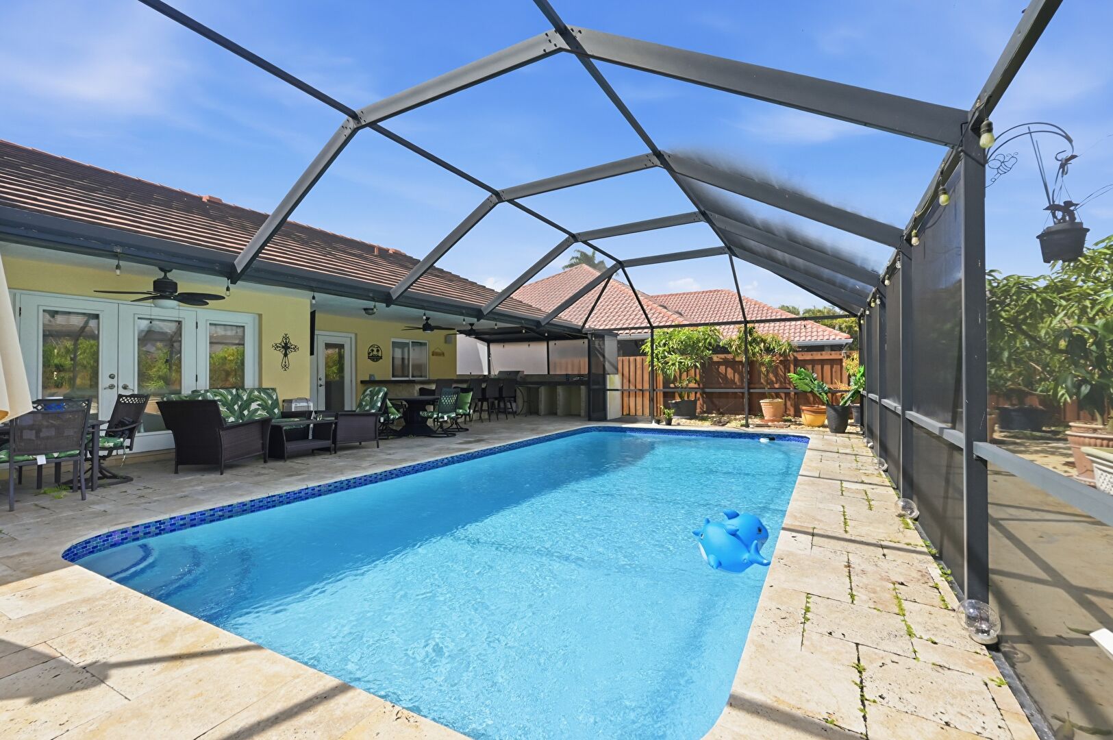 Fence, French Doors, Lanai, Outdoor Bar, Outdoor Dining Area, Outdoor Living Space, Patio, Pool, Sunroom, Lanai, Patio, Pool
