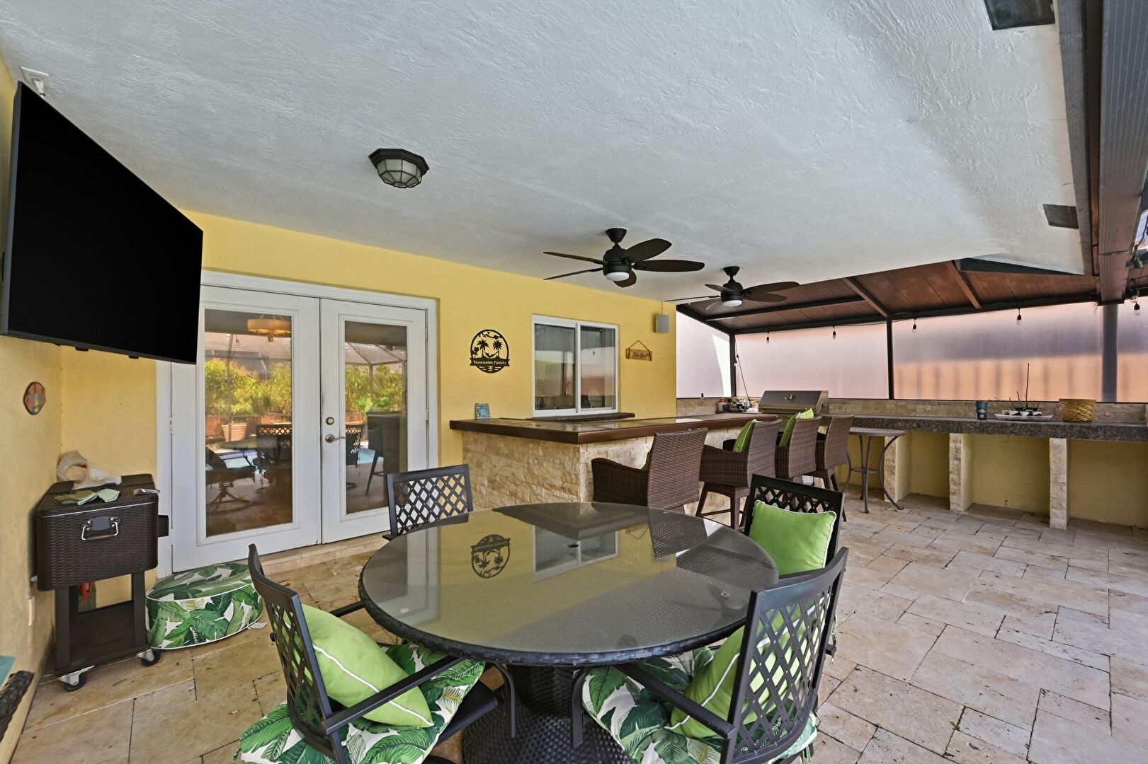 Ceiling Fan, French Doors, Grill, Lanai, Outdoor Bar, Outdoor Dining Area, Outdoor Kitchen, Patio, Pool, Sunroom, Vent, Ceiling Fan, Fence, Outdoor Bar, Patio