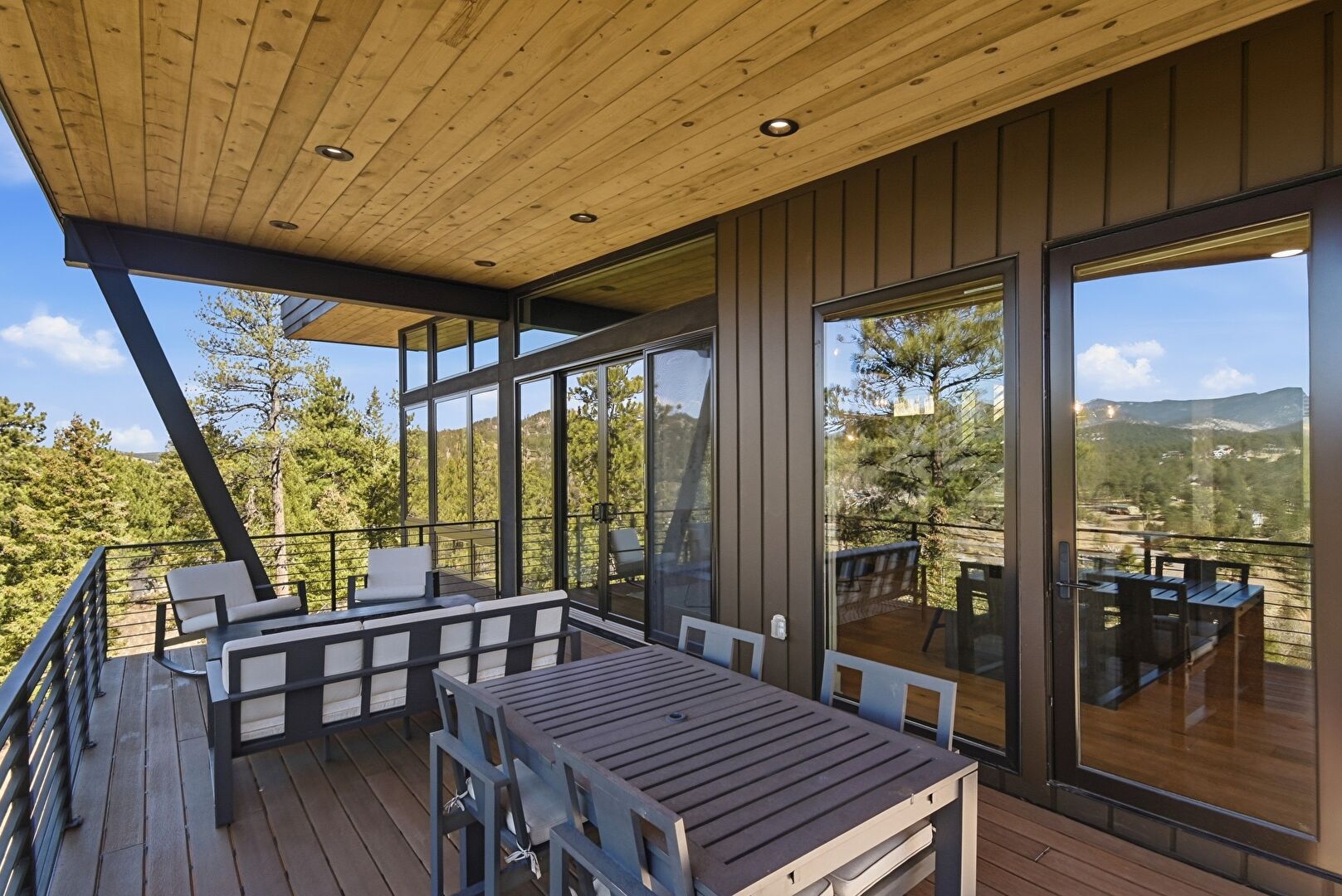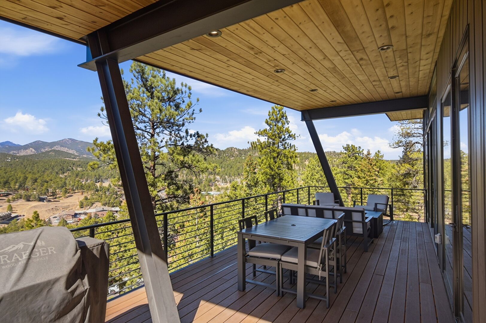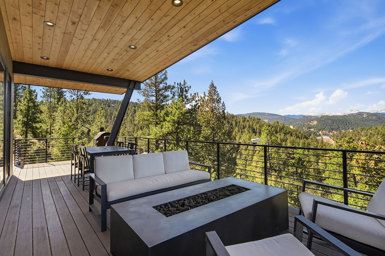 Balcony, Deck, Fire Pit, Forest View, Grill, Mountain View, Outdoor Dining Area, Outdoor Living Space, Balcony, Deck, Forest View, Outdoor Dining Area