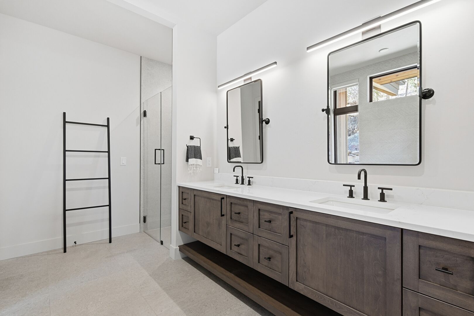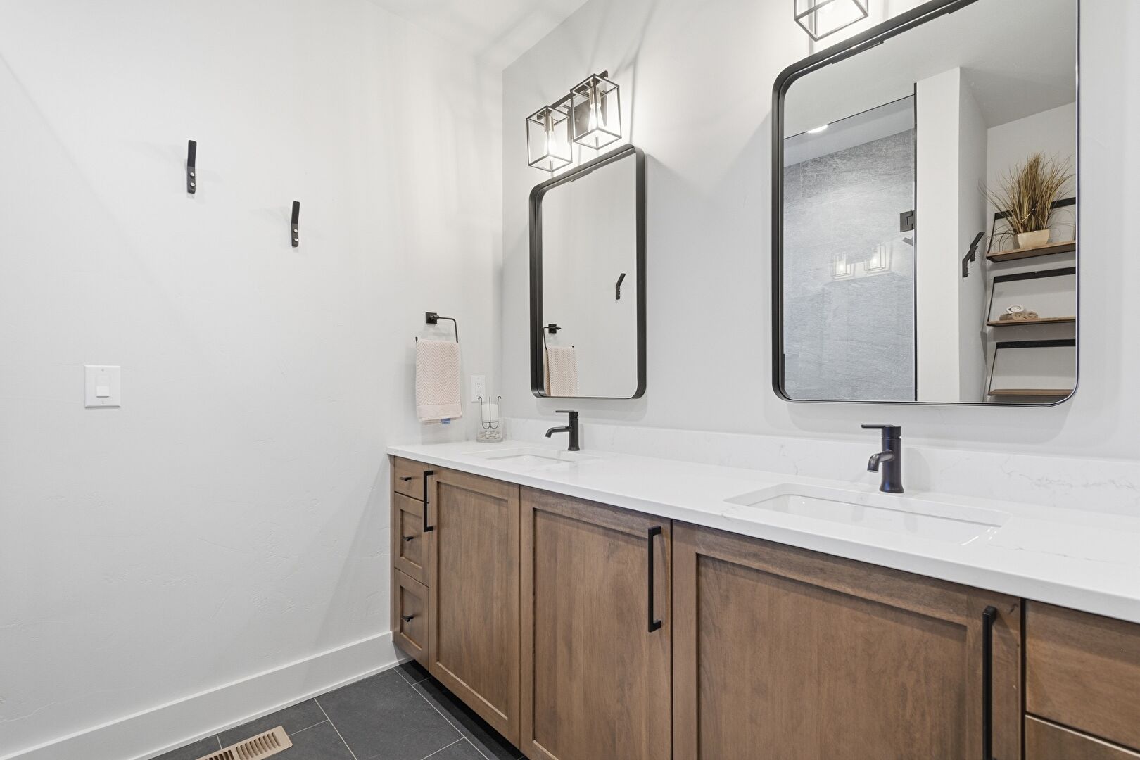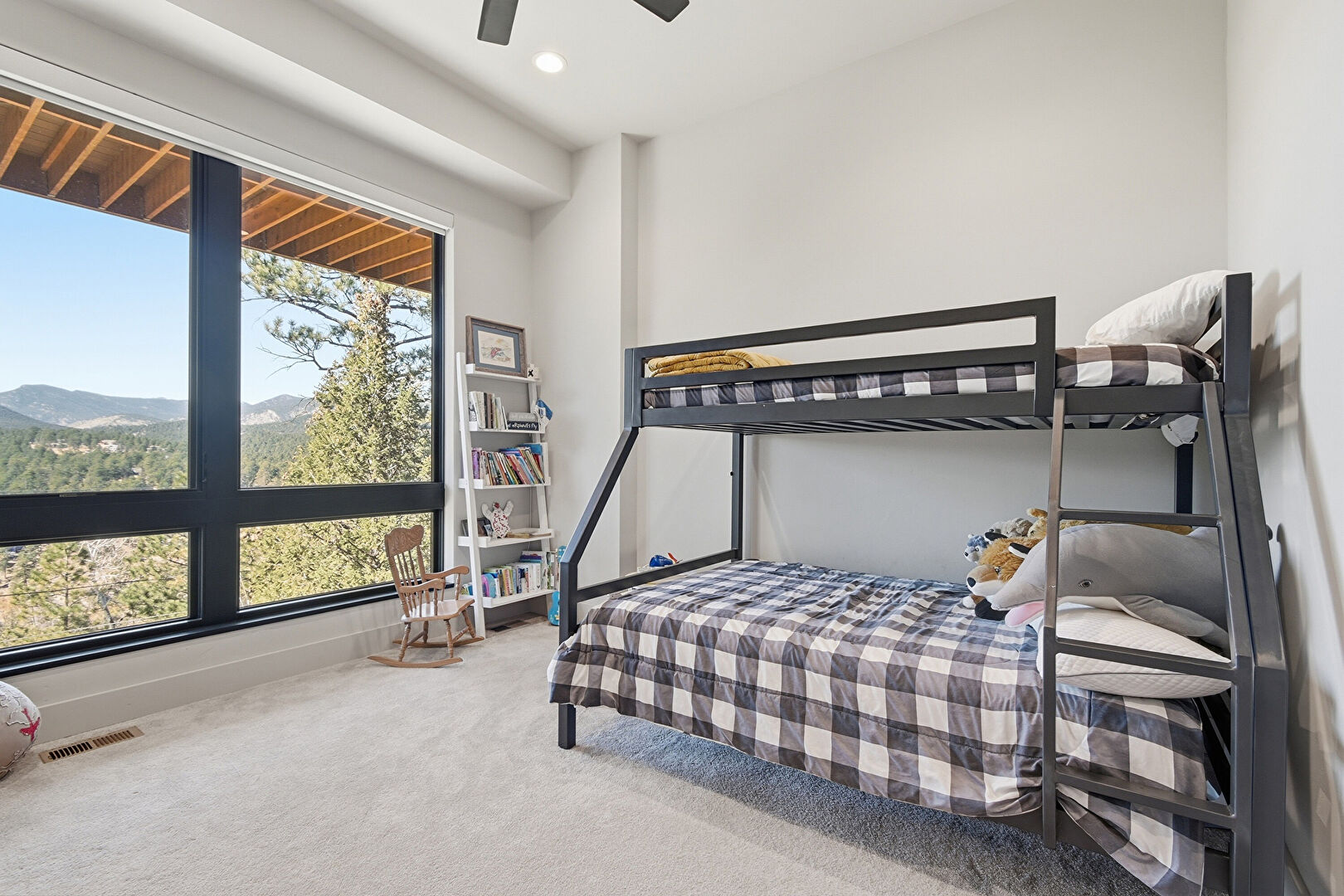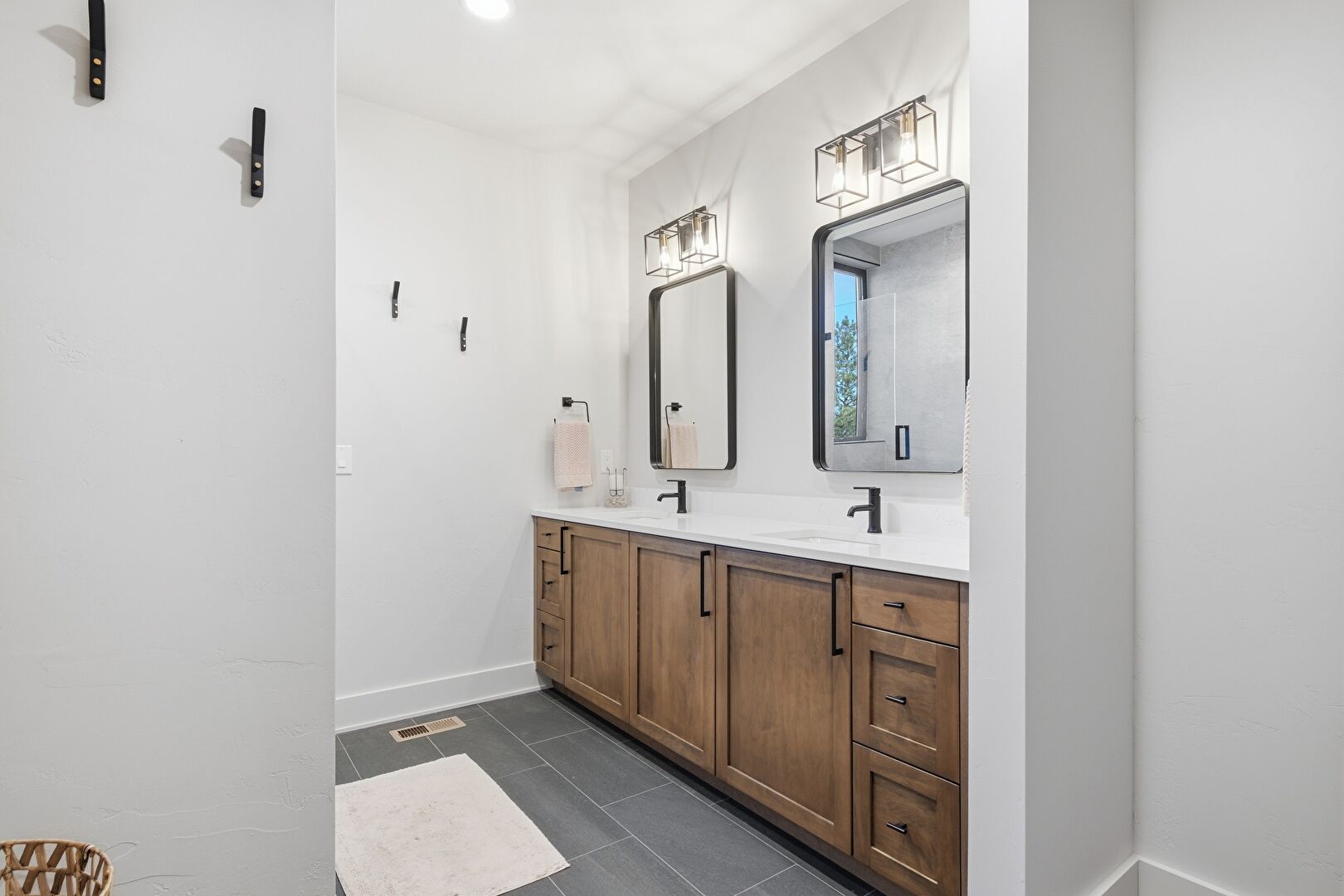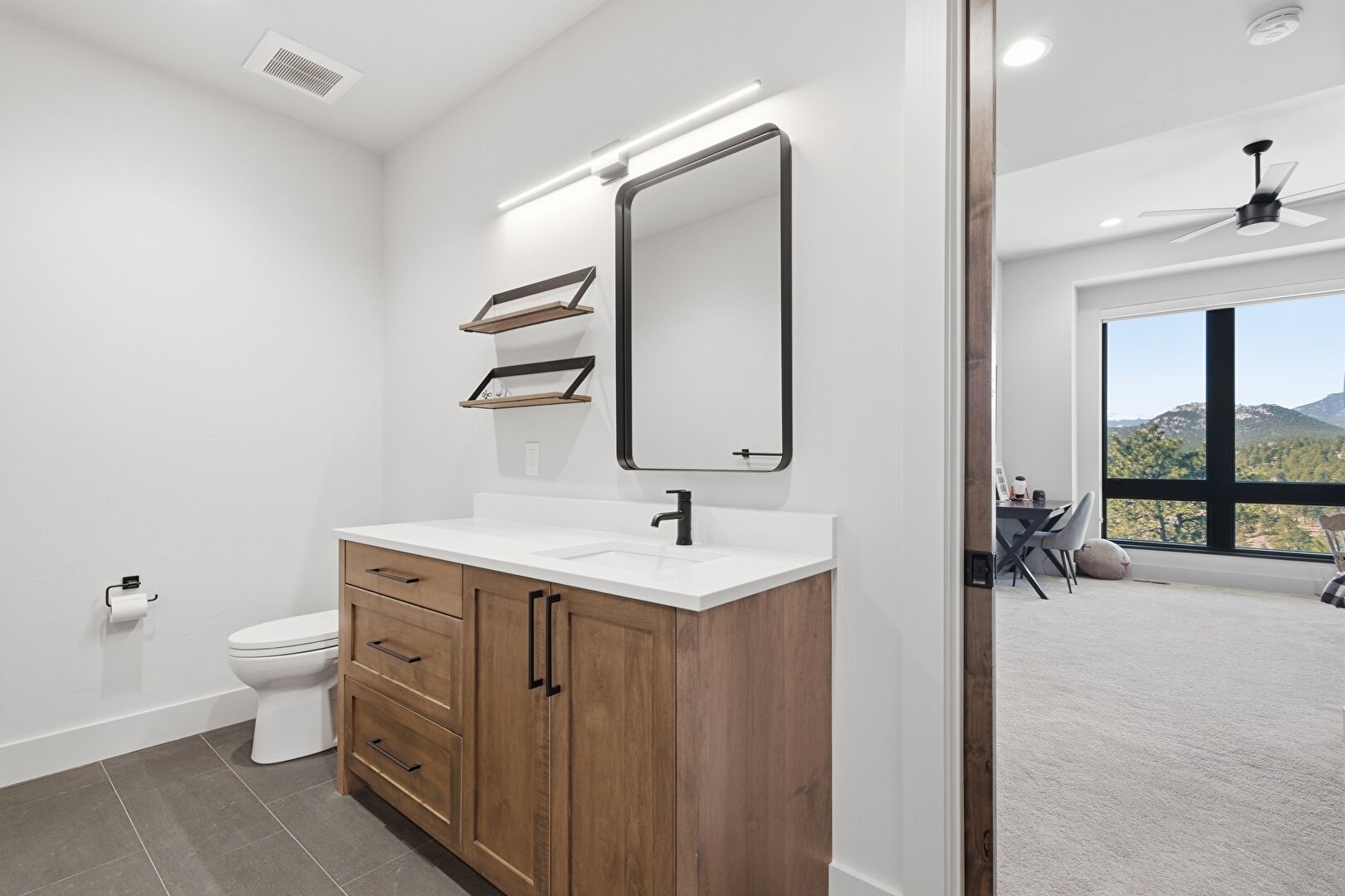 Baseboards Wall, Carpet, Ceiling Fan, Closet, Double Vanity, Drywall, Full Bathroom, Half Bathroom, Mountain View, Natural Light, Recessed Lighting, Smoke Carbon Monoxide Detector, Tile Floor, Tile Wall, Vanity, Vaulted Ceiling, Vent, Vinyl Floor, Drywall, Full Bathroom, Natural Light, Tile Floor, Vent, Wood Finish Floor