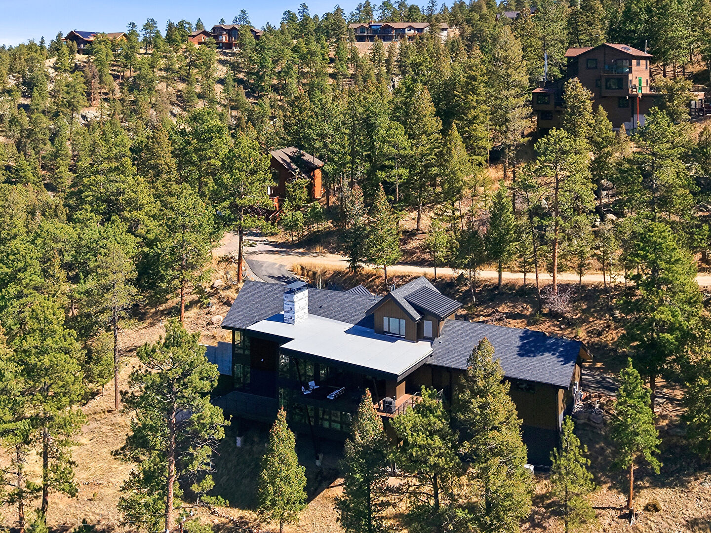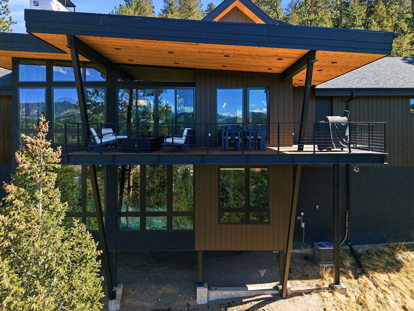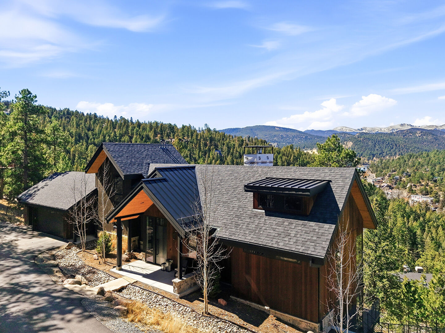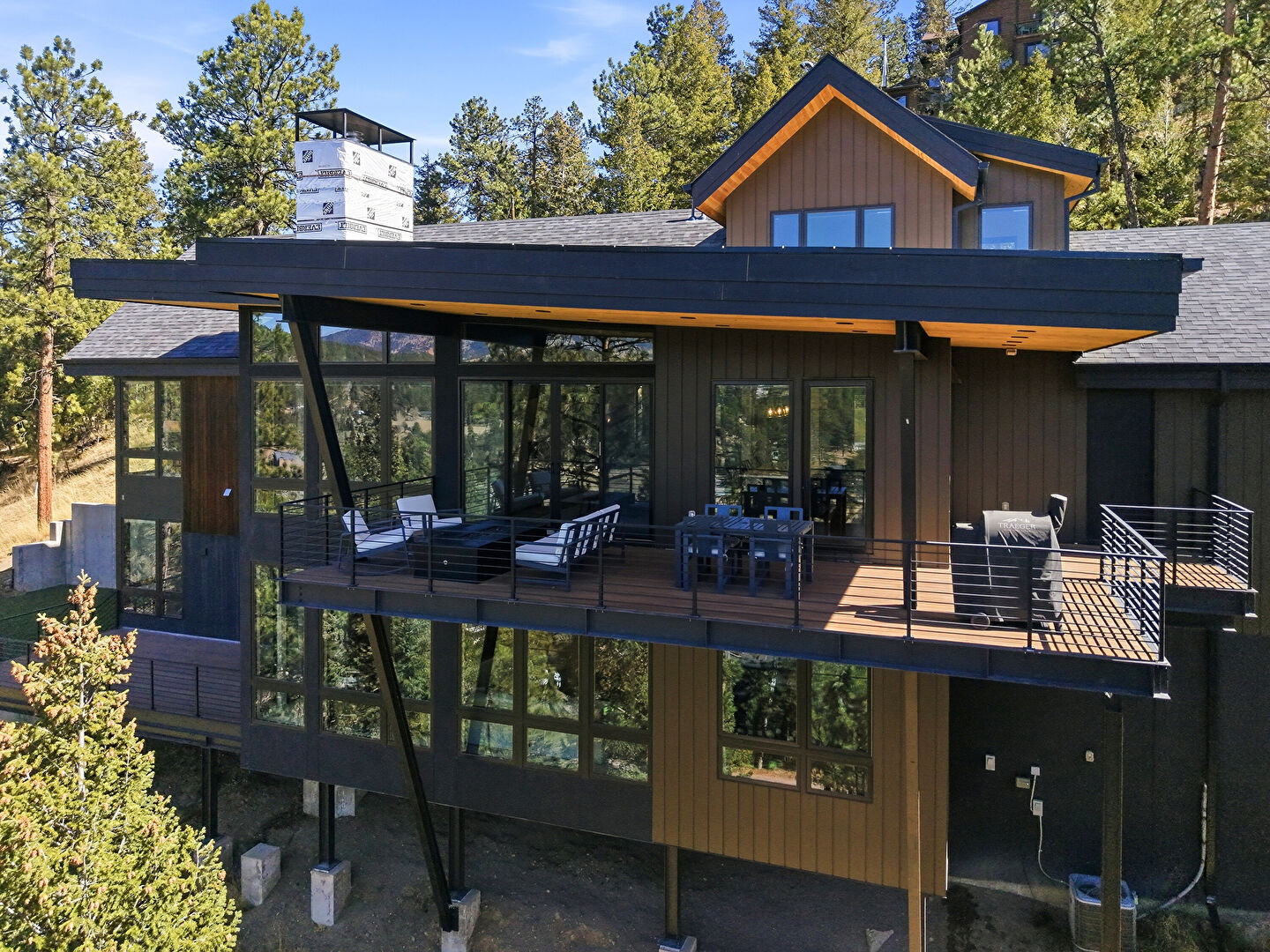 Board Batten Siding, Chimney, Dormer Roof, Downspout, Fence, Forest View, Gutters, Metal Roof, Mountain View, Patio, Porch, Shingle Roof, Standing Seam Roof, Vertical Siding, Wood Siding, Dormer Roof, Driveway, Patio, Sunroom, Wood Siding