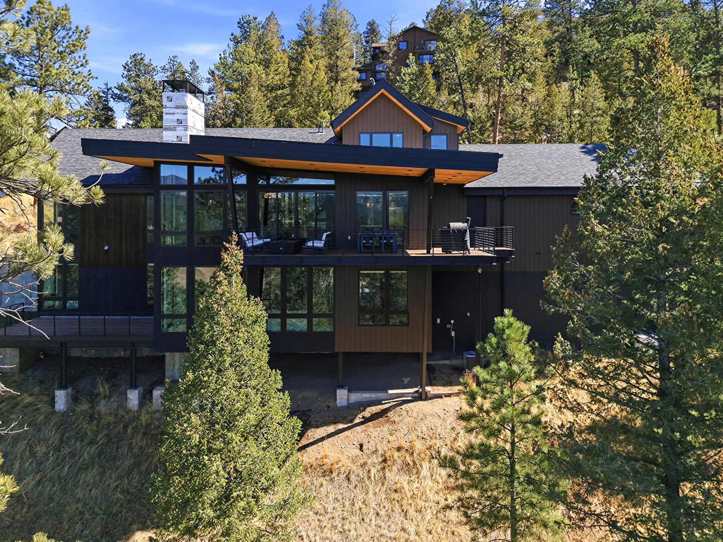 Balcony, Central Ac, Chimney, Deck, Dormer Roof, Glass Siding, Grill, Mountain View, Patio, Shingle Roof, Vertical Siding, Woods View, Basement Walk Out, Chimney, Shingle Roof