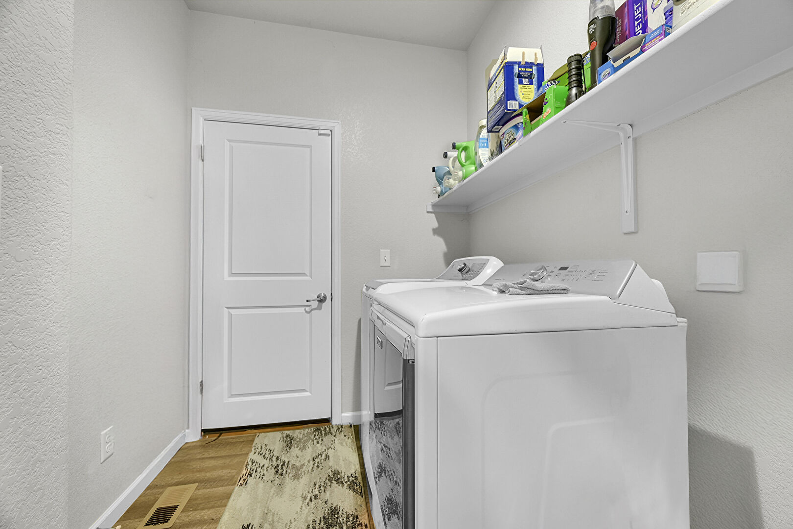 Baseboards Wall, Laundry, Textured Wall, Wood Finish Floor, Vent