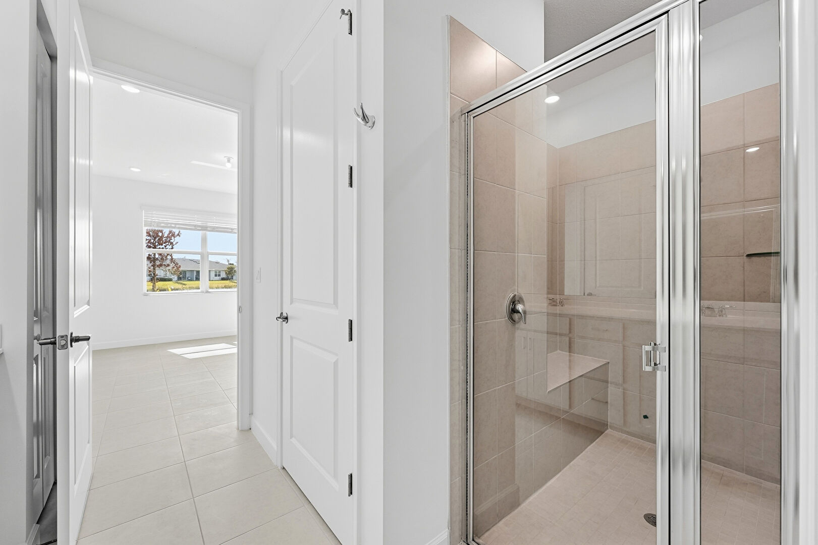 Double Vanity, Drywall, Full Bathroom, Natural Light, Recessed Lighting, Tile Floor, Vent, Walk In Closet, Baseboards Wall