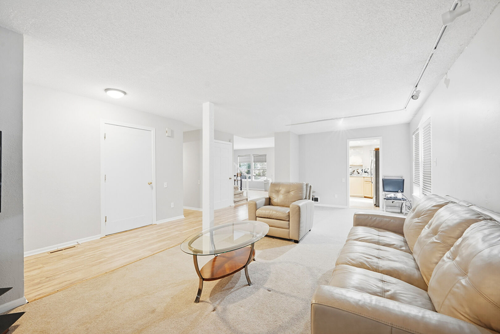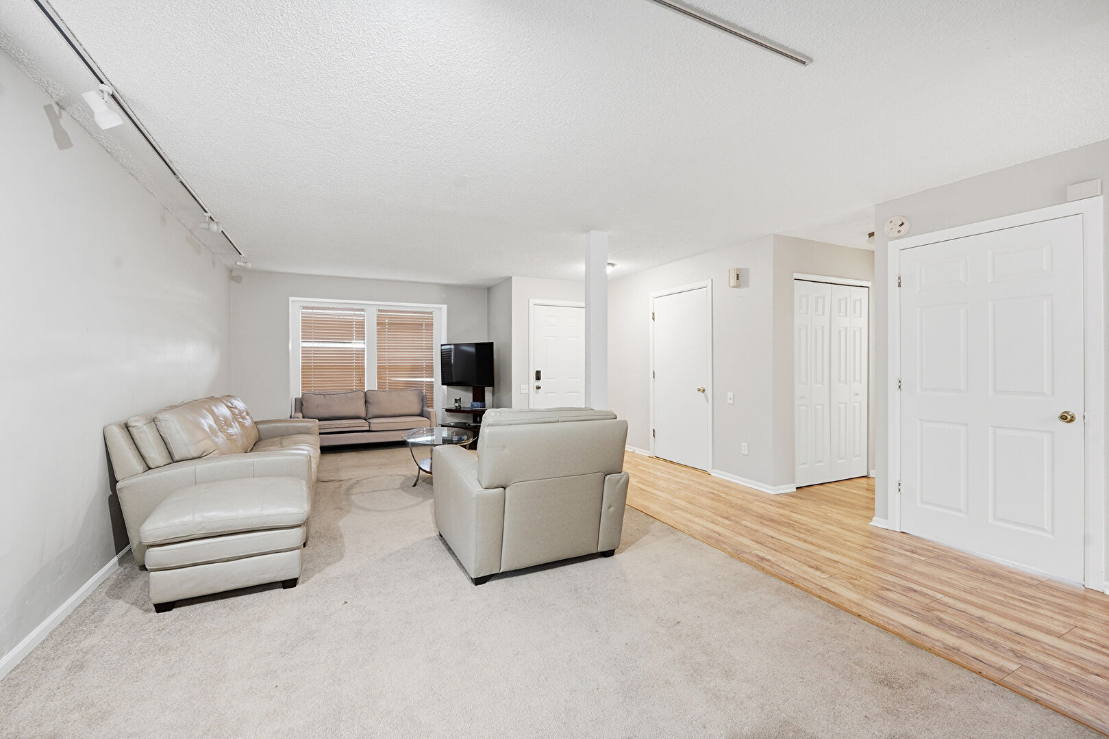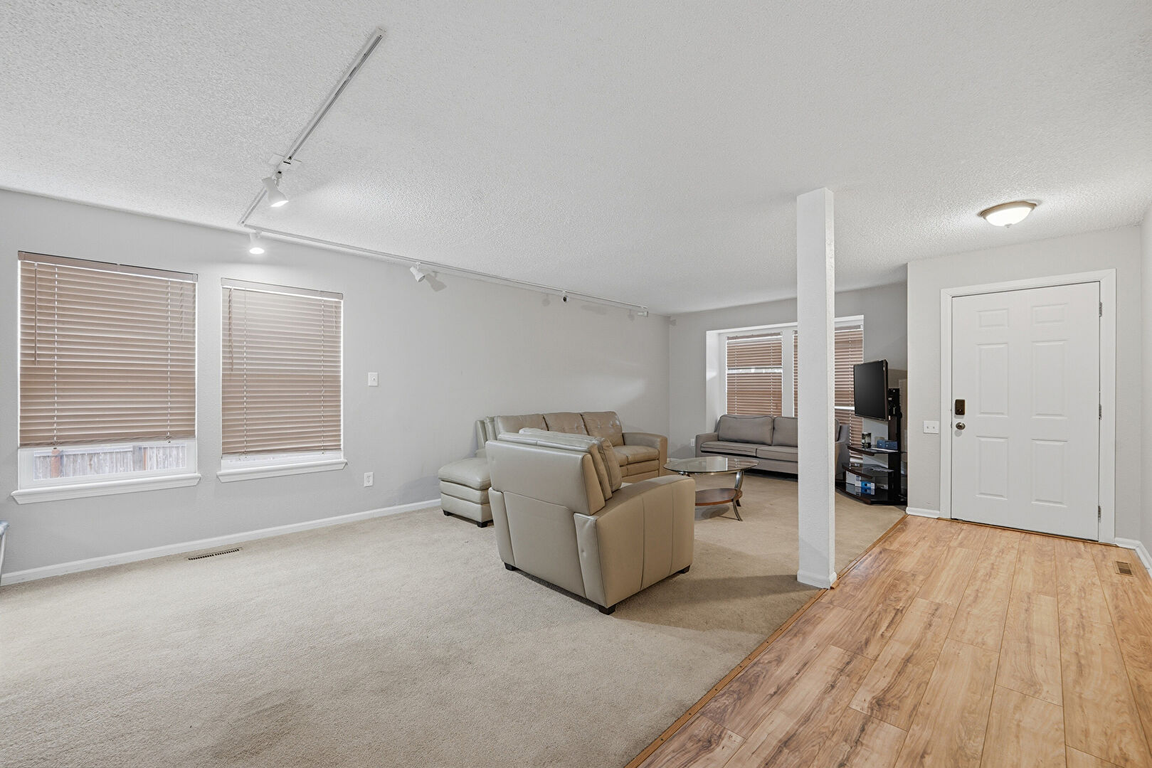 Baseboards Wall, Carpet, Drywall, Natural Light, Textured Ceiling, Track Lighting, Wood Finish Floor, Baseboards Wall, Vent