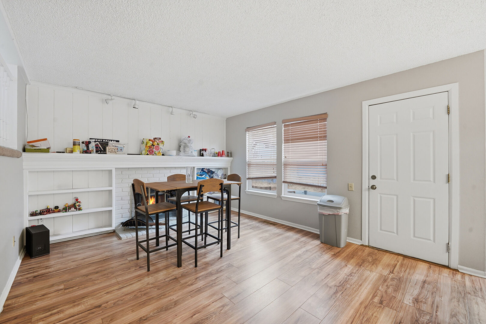 Baseboards Wall, Drywall, Natural Light, Textured Ceiling, Wood Finish Floor, Track Lighting