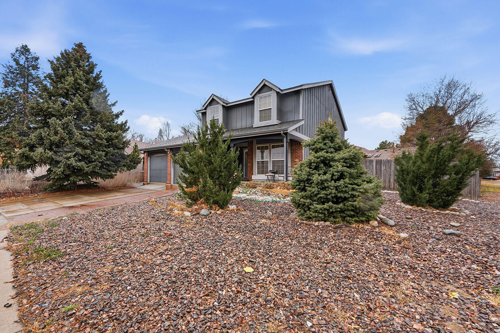 Board Batten Siding, Brick Siding, Chimney, Downspout, Driveway, Fence, Gutters, Porch, Vertical Siding, Concrete Foundation, Driveway