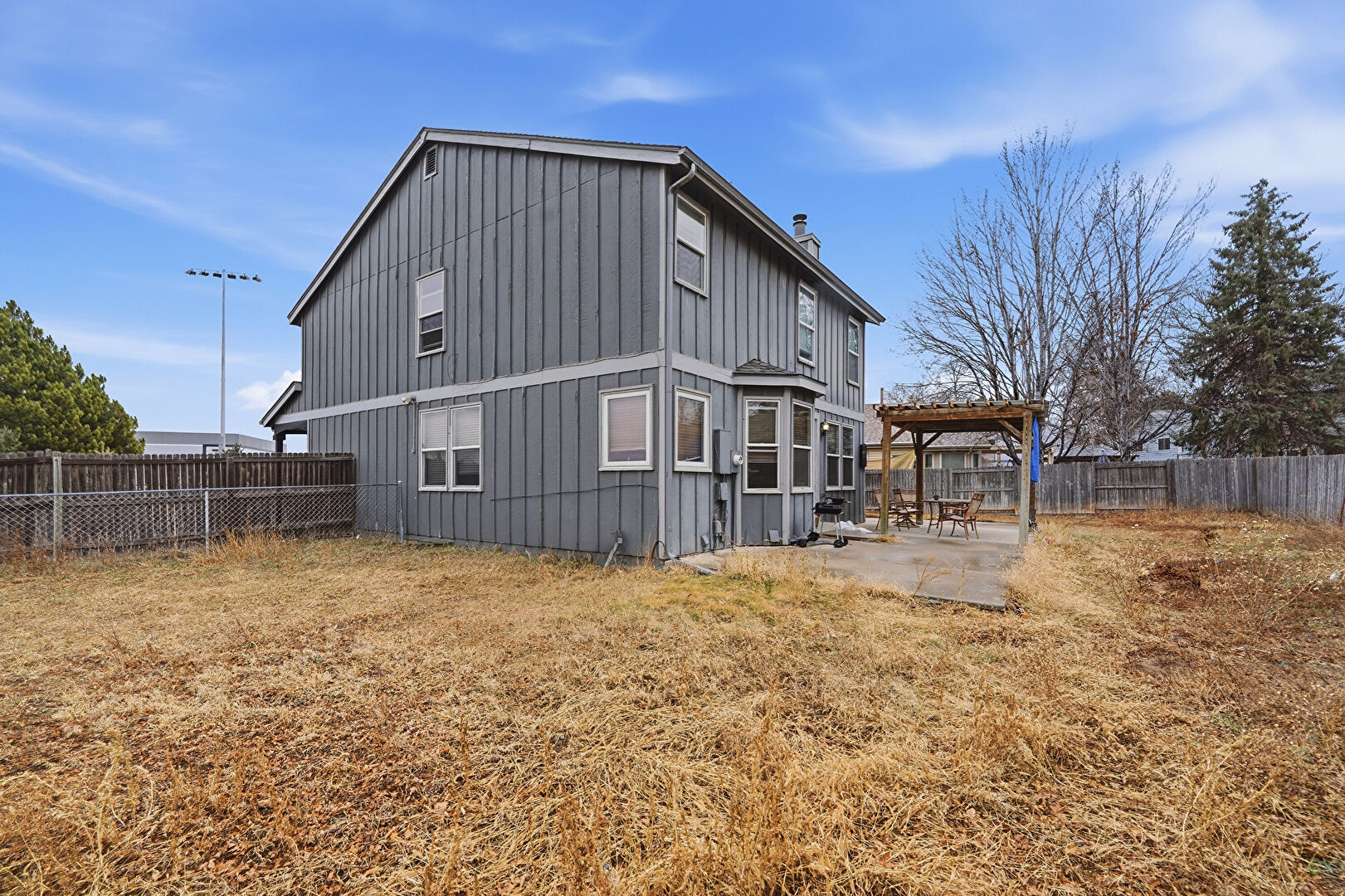 Board Batten Siding, Central Ac, Chimney, Downspout, Fence, Gazebo, Gutters, Lawn, Outdoor Dining Area, Patio, Pergola, Vertical Siding, Concrete Foundation, Fence