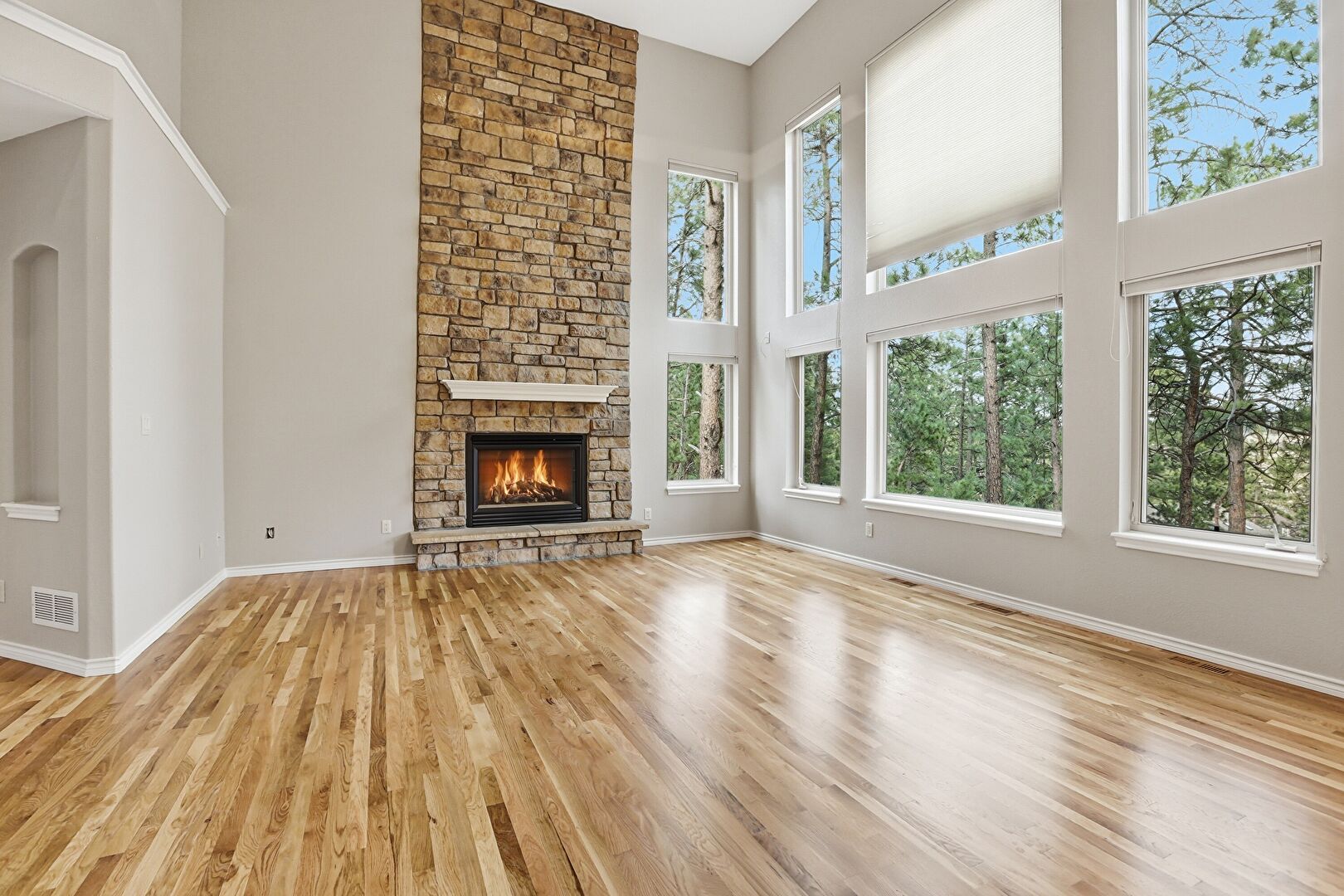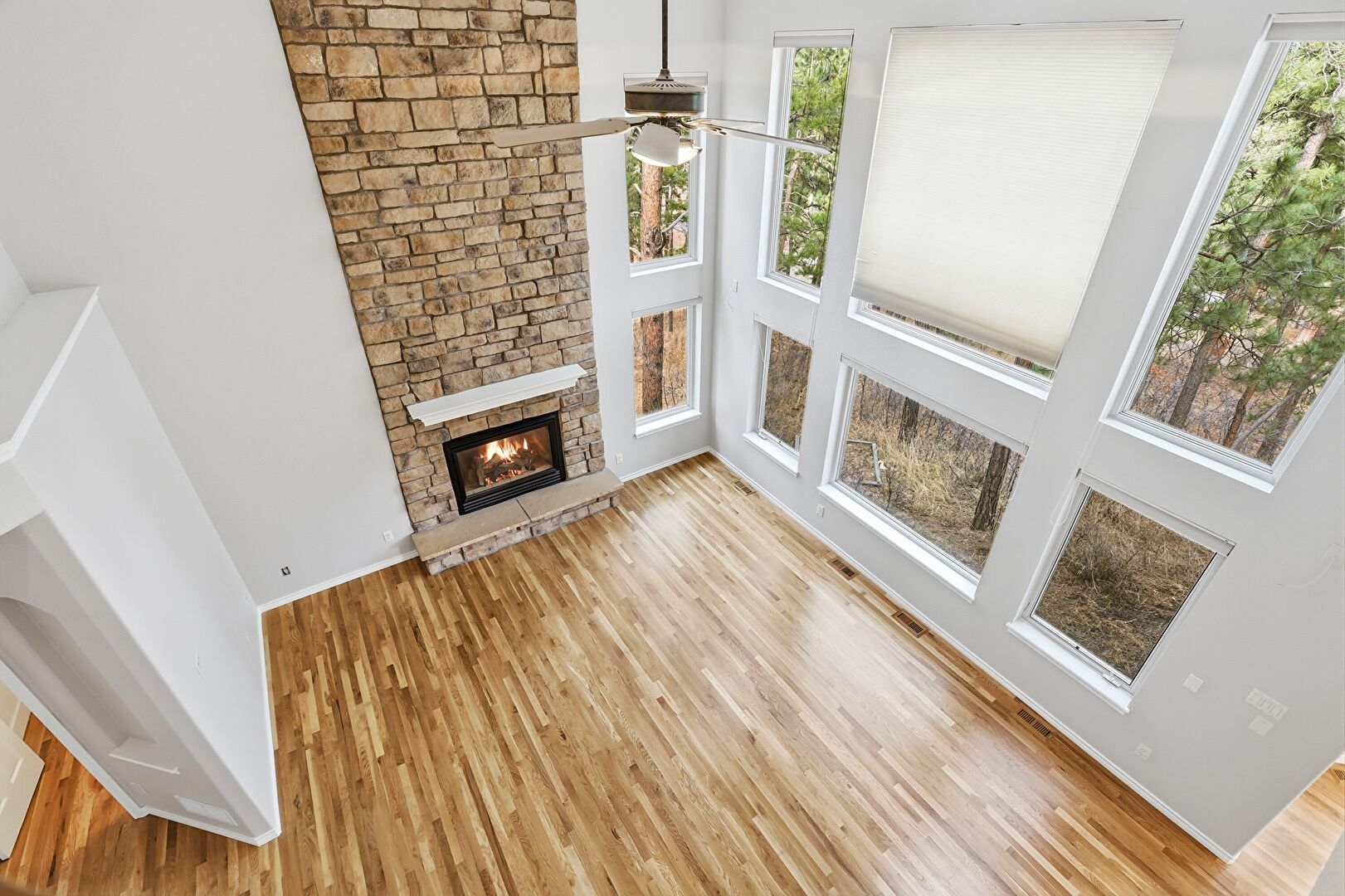 Arched Walkways, Baseboards Wall, Ceiling Fan, Drywall, Fireplace, High Ceiling, L Shaped Kitchen, Natural Light, Notable Chandelier, Recessed Lighting, Vent, Wood Finish Floor, Baseboards Wall, Double Oven, High Ceiling, Wood Finish Floor