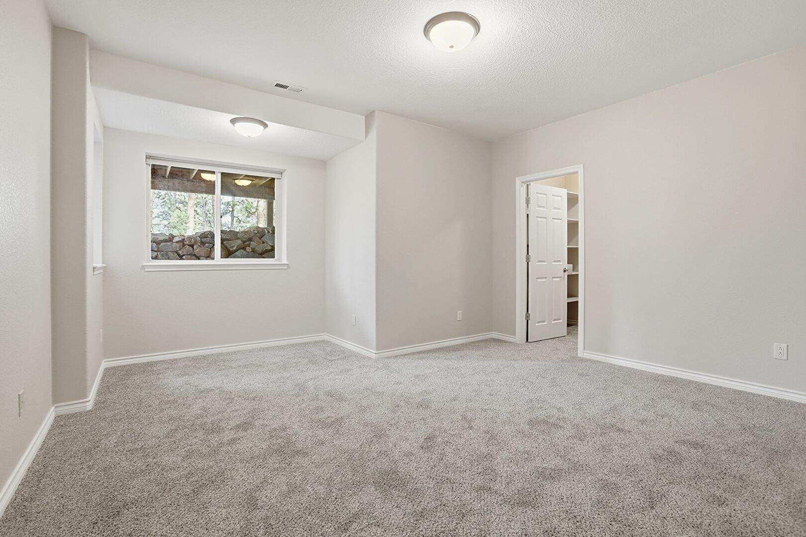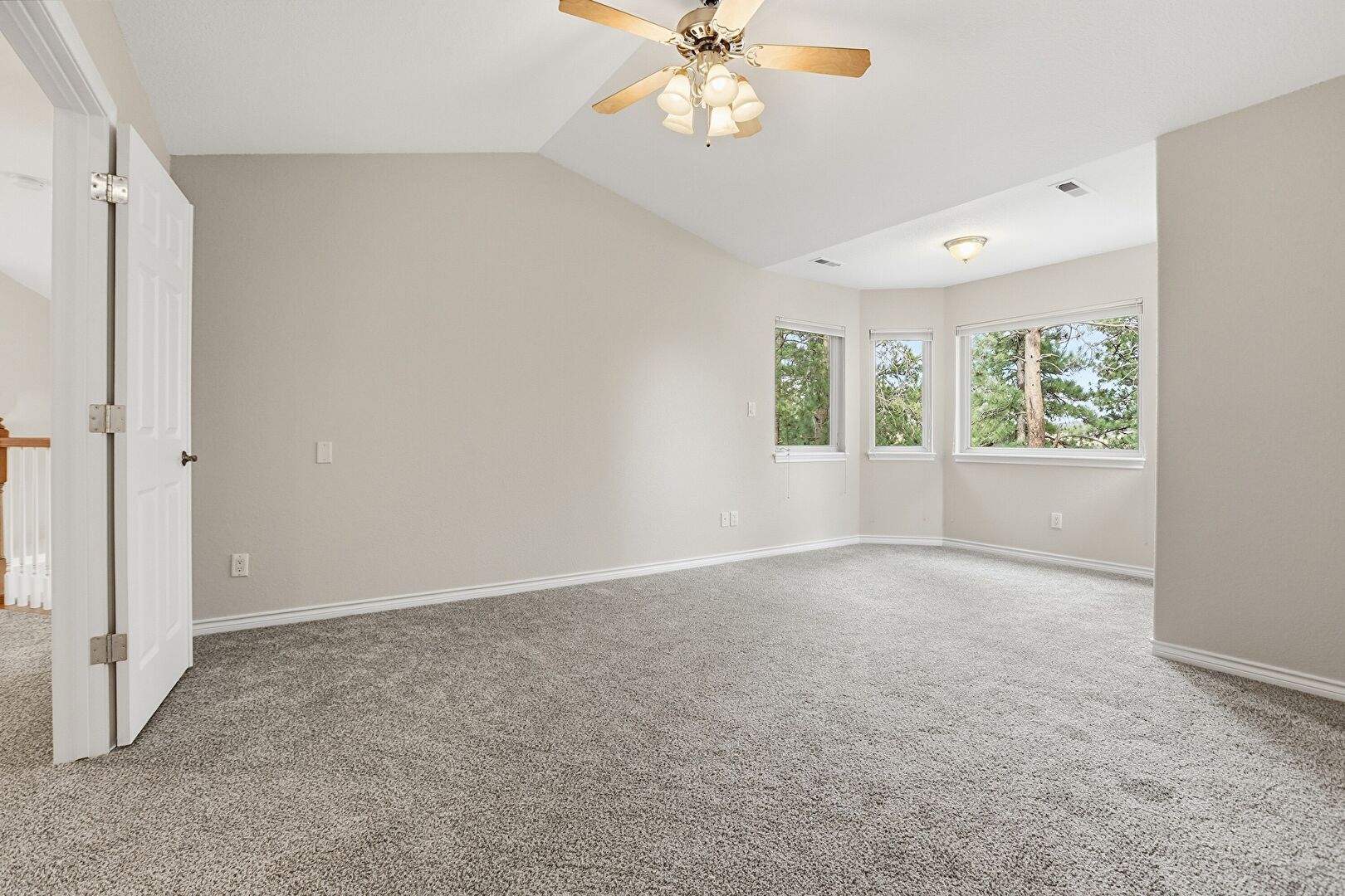 Baseboards Wall, Carpet, Cathedral Ceiling, Ceiling Fan, Drywall, Natural Light, Textured Ceiling, Vaulted Ceiling, Vent, Carpet, Drywall, Natural Light, Vent