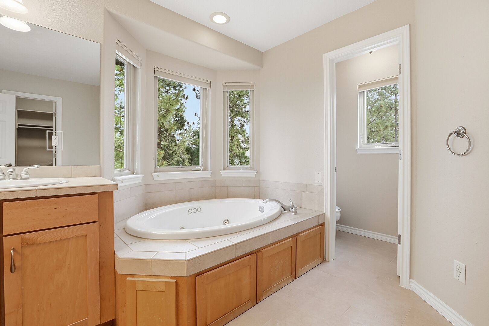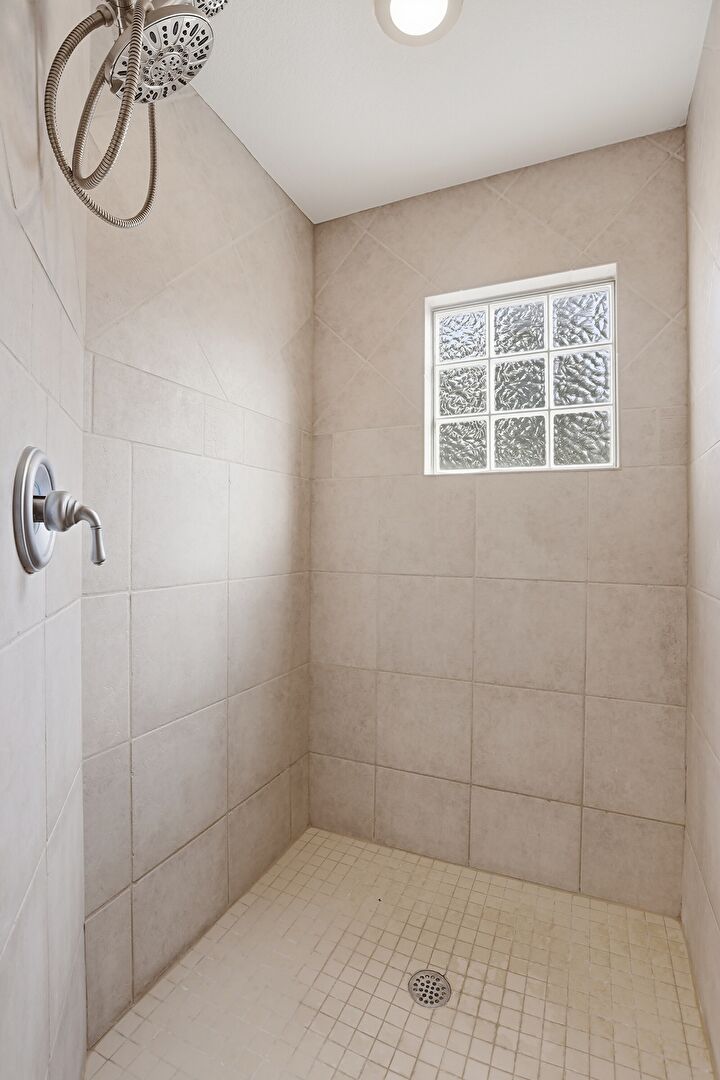 Baseboards Wall, Carpet, Combined Bath Shower, Double Vanity, Drywall, Full Bathroom, Natural Light, Recessed Lighting, Textured Wall, Tile Floor, Vanity, Vinyl Floor, Water Closet, Baseboards Wall, Drywall, Full Bathroom, Textured Wall, Vent