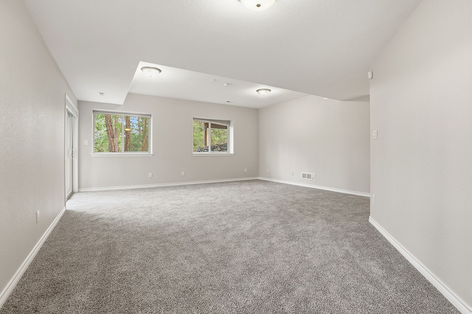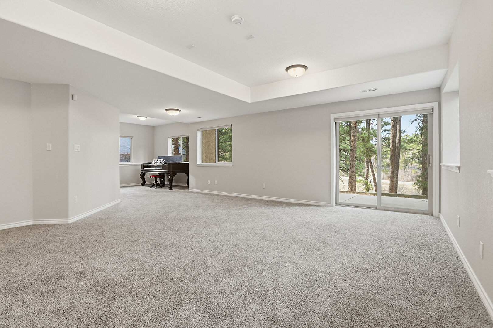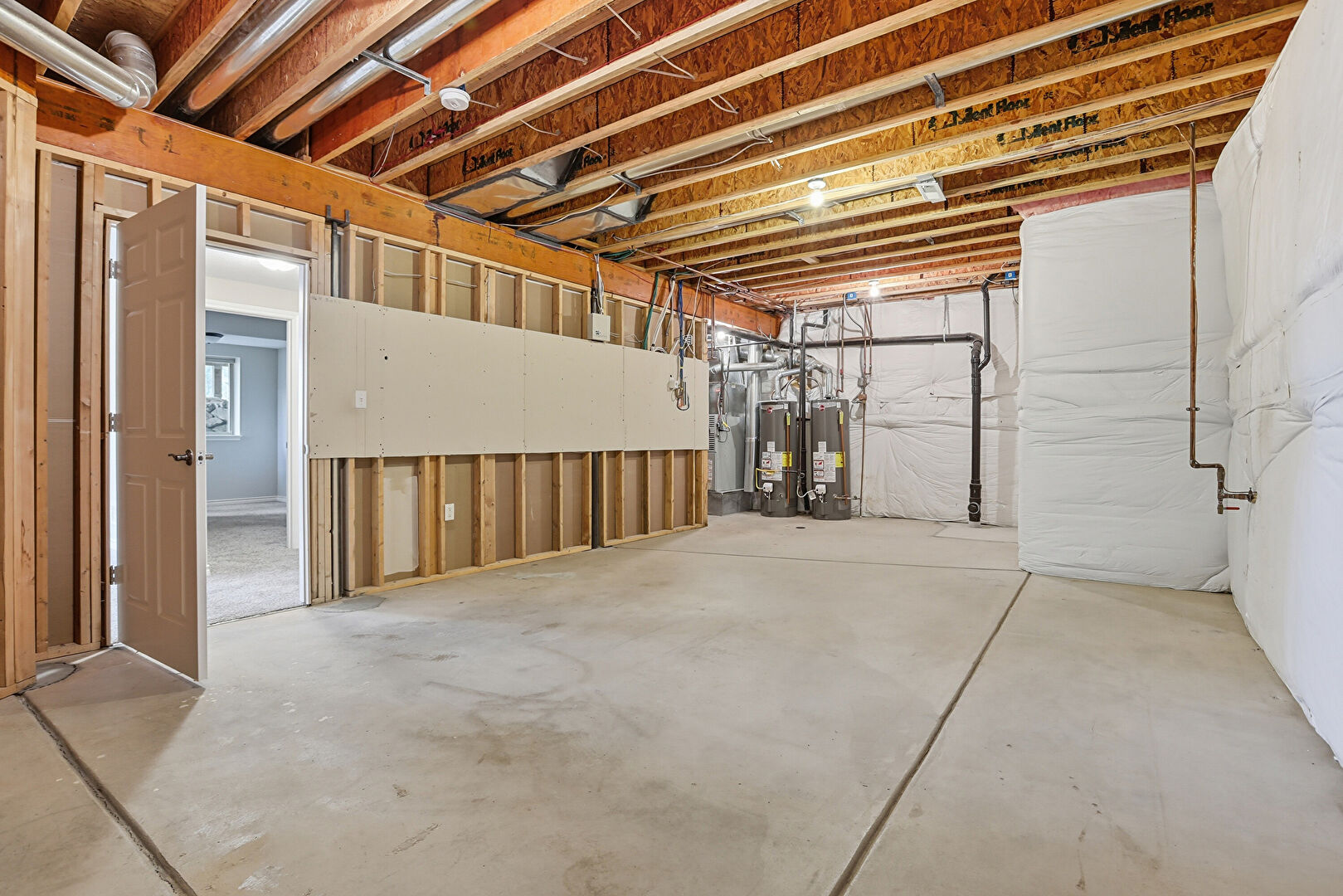 Baseboards Wall, Basement, Carpet, Drywall, Natural Light, Tray Ceiling, Vent, Carpet, Natural Light, Vent, Water Heater