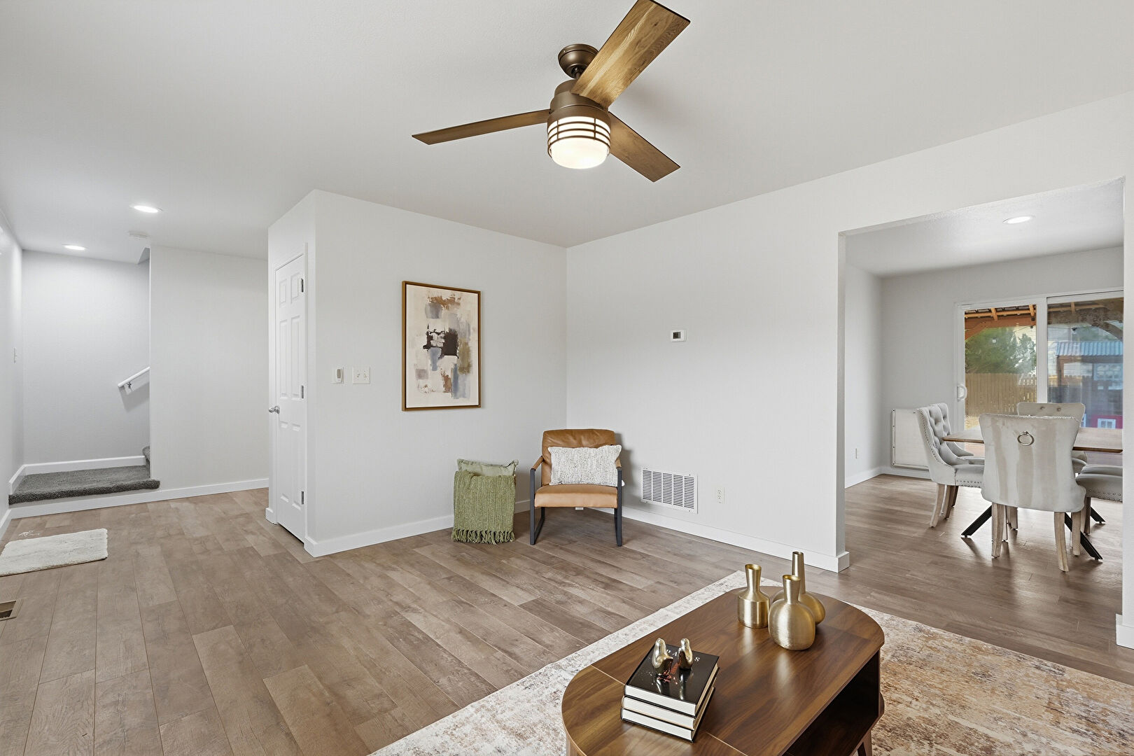 Baseboards Wall, Ceiling Fan, Drywall, Natural Light, Recessed Lighting, Vent, Wood Finish Floor, Baseboards Wall, Drywall, Natural Light, Wood Finish Floor