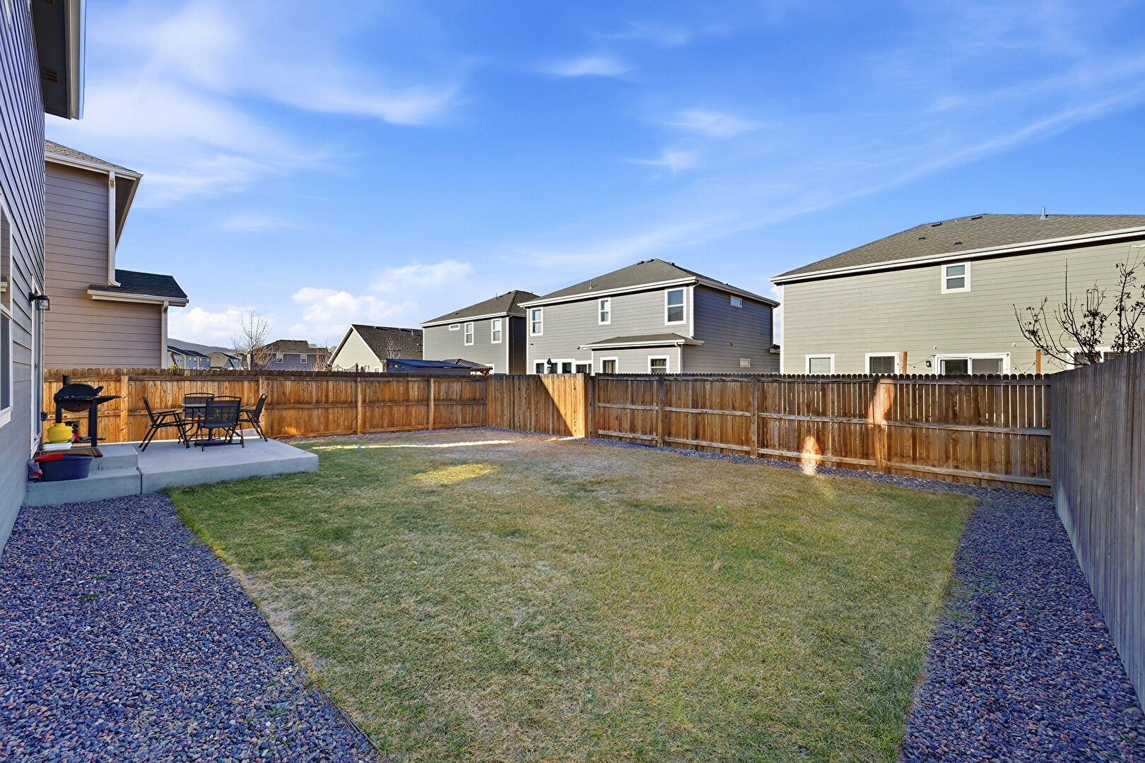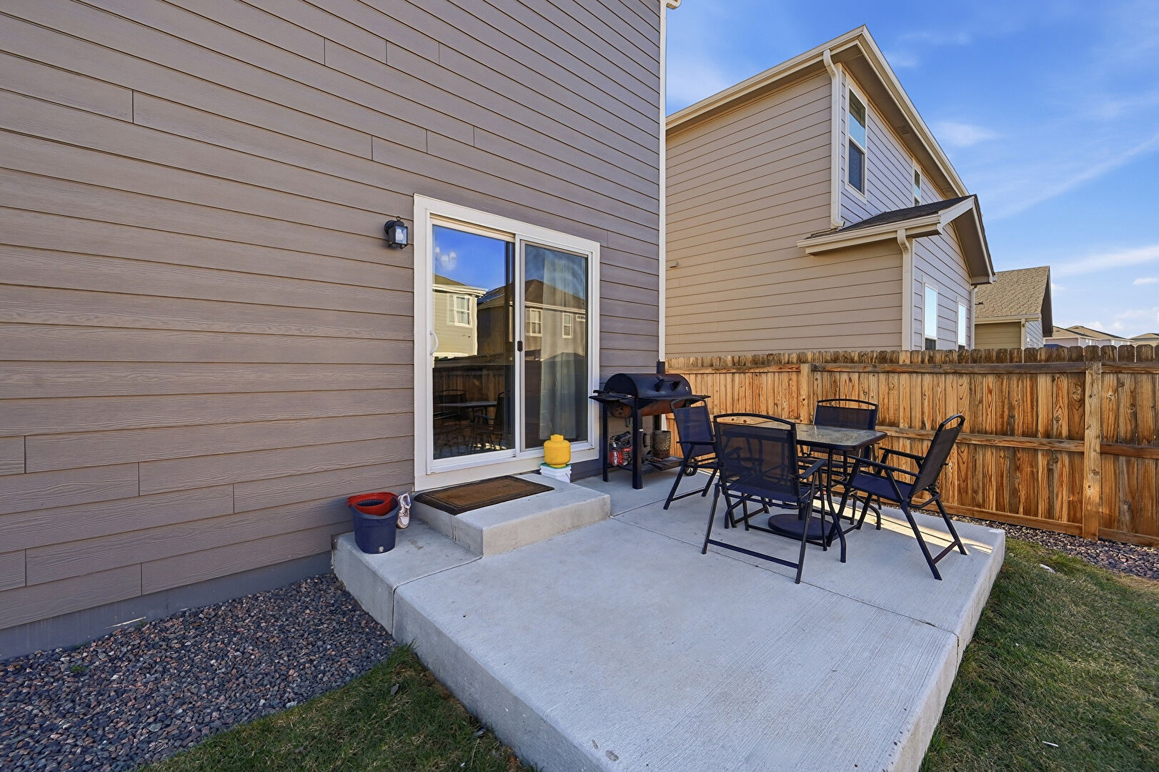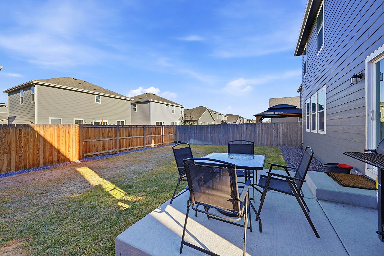 Fence, Grill, Lawn, Outdoor Dining Area, Patio, Fence, Residential View