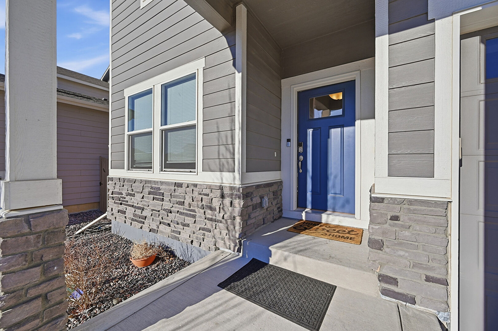 Concrete Foundation, Horizontal Siding, Stone Siding, Porch