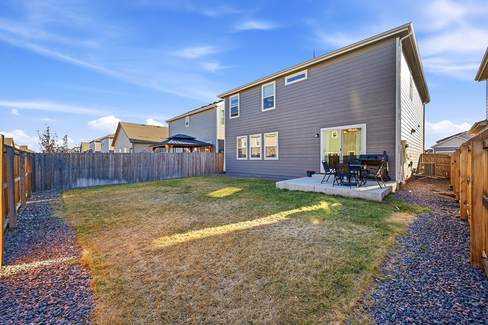 Concrete Foundation, Downspout, Fence, Gazebo, Gutters, Horizontal Siding, Lawn, Patio, Central Ac, Fence, Gutters