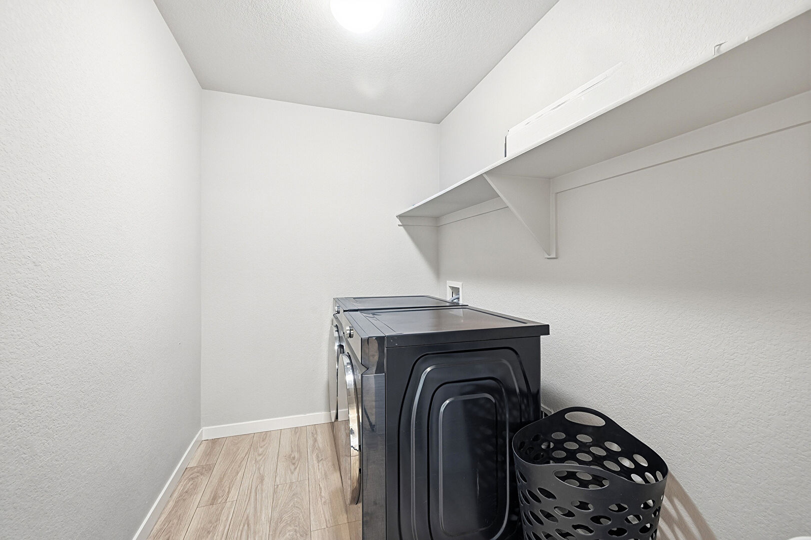 Baseboards Wall, Laundry, Textured Ceiling, Textured Wall, Washer Hookup, Wood Finish Floor