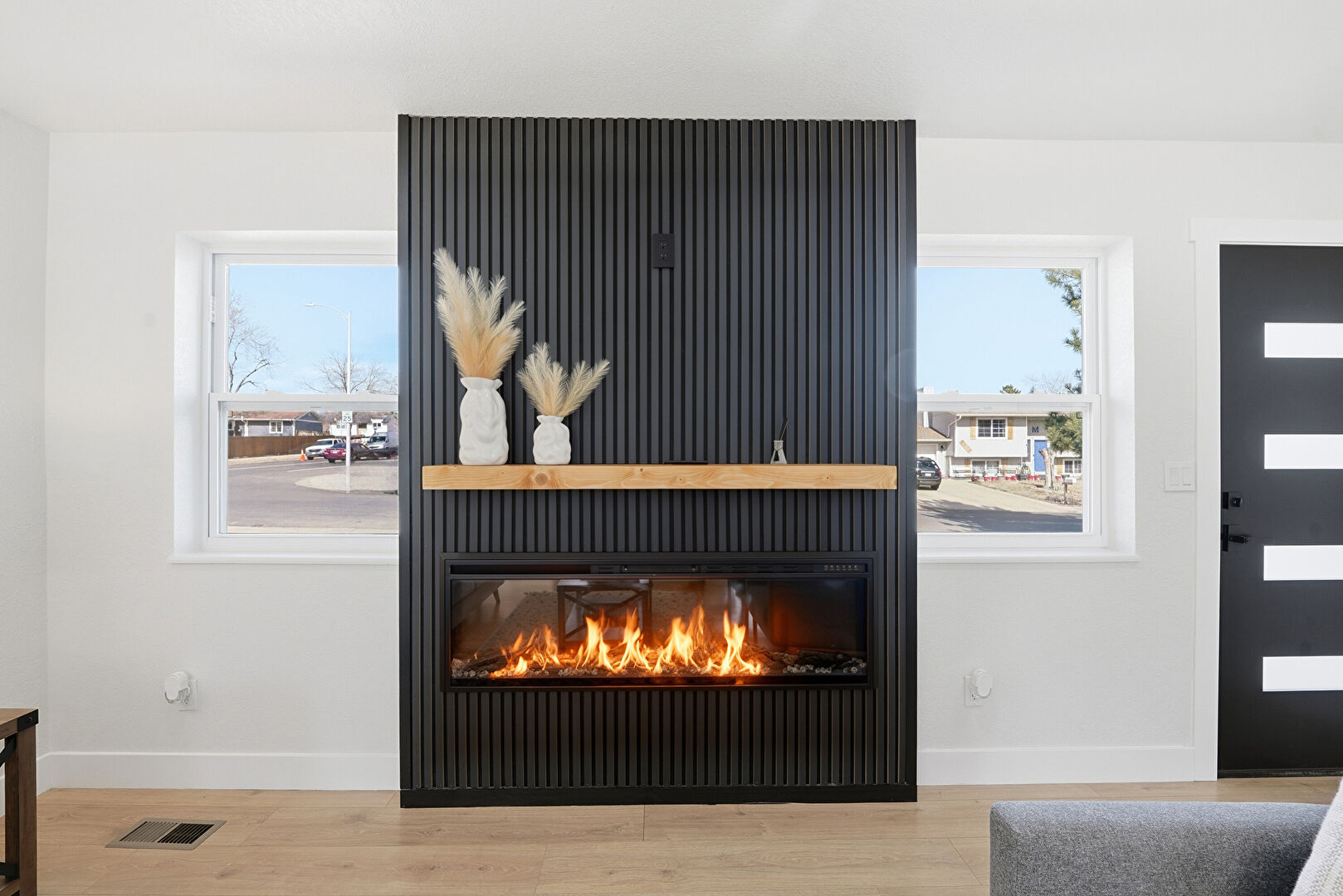 Baseboards Wall, Fireplace, Vent, Wood Finish Floor, Drywall