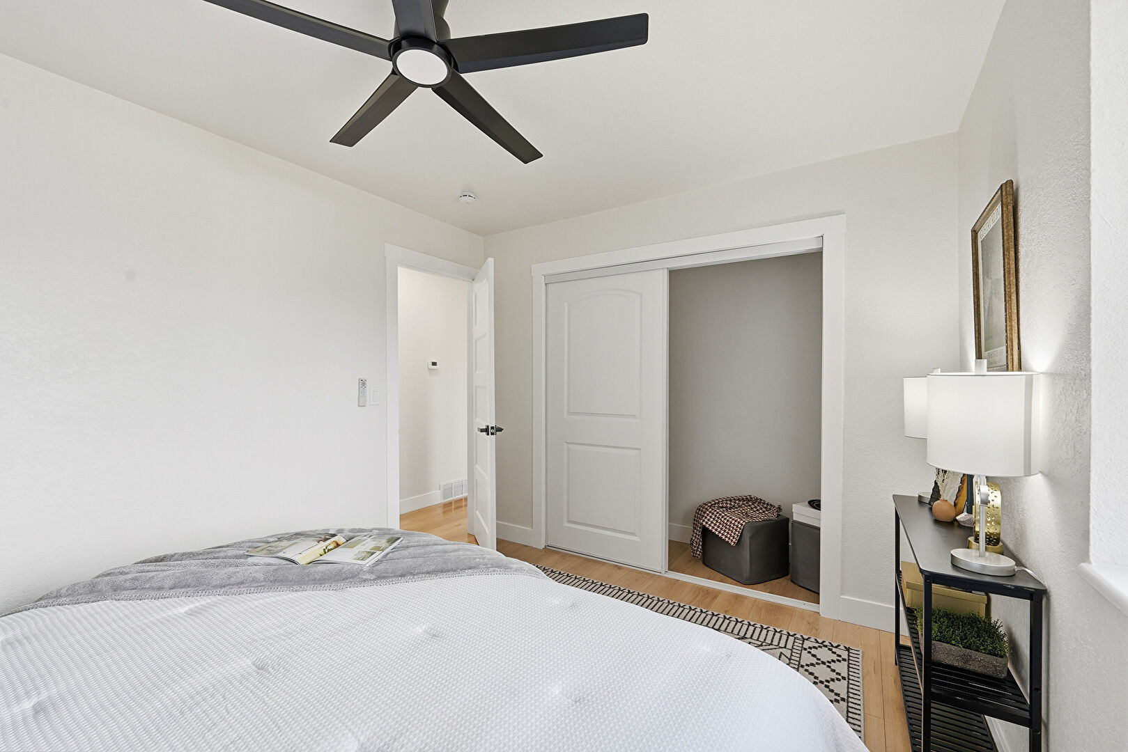 Baseboards Wall, Ceiling Fan, Closet, Drywall, Wood Finish Floor, Ceiling Fan, Natural Light