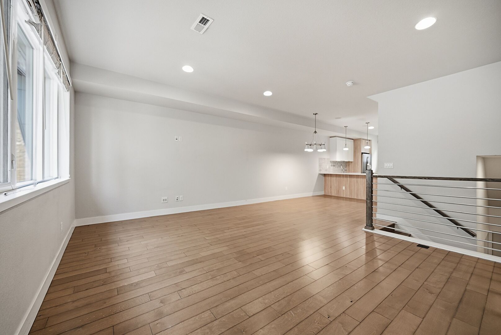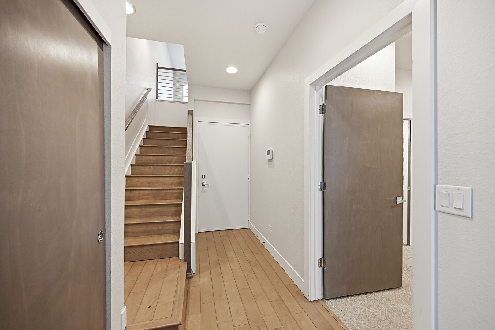 Baseboards Wall, Drywall, Recessed Lighting, Smoke Carbon Monoxide Detector, Stairs, Textured Wall, Wood Finish Floor