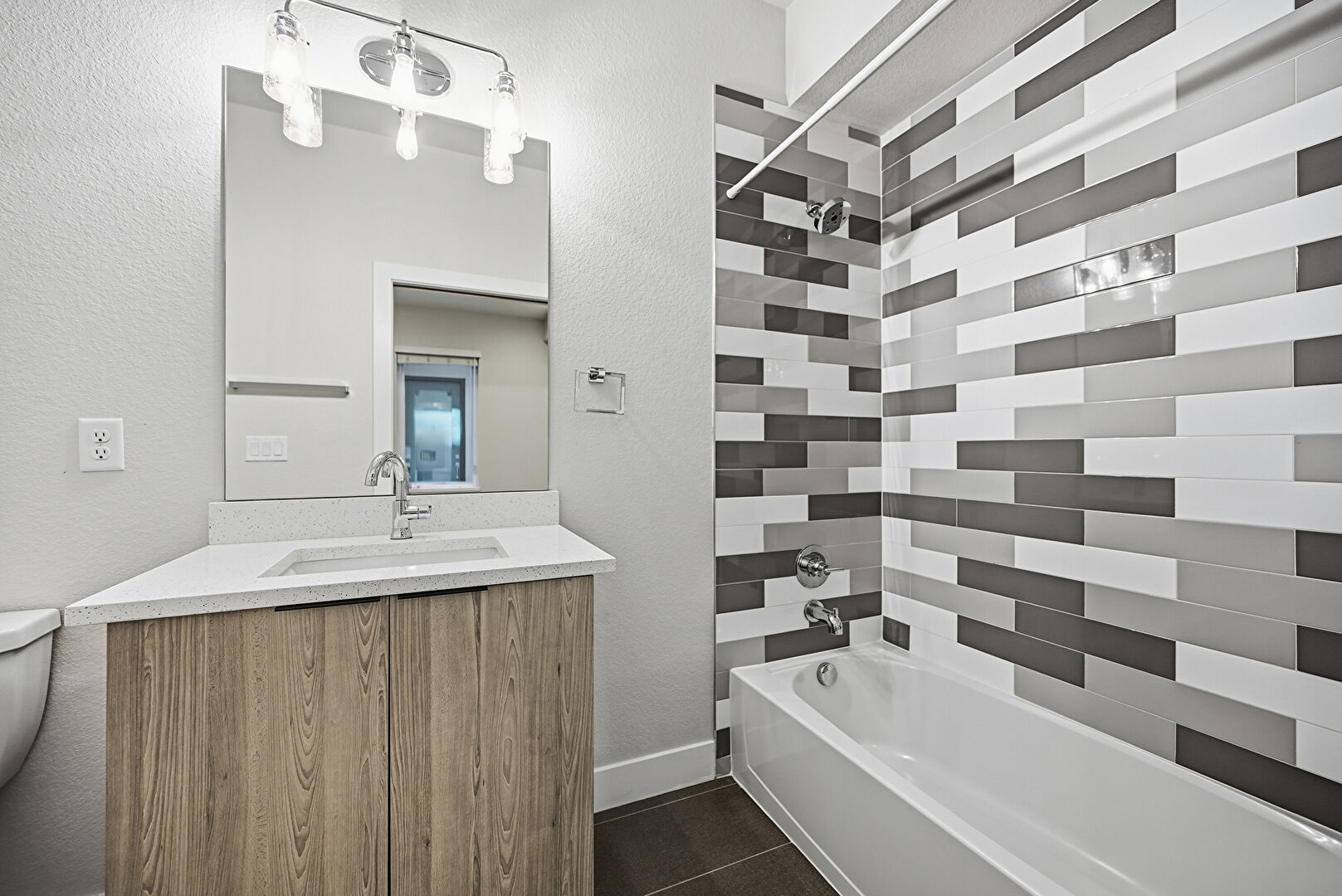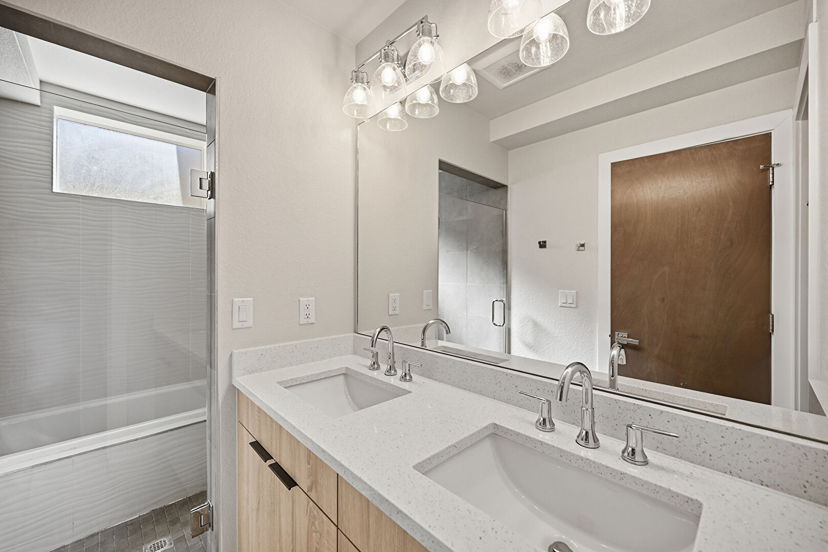Combined Bath Shower, Drywall, Full Bathroom, Natural Light, Double Vanity, Full Bathroom