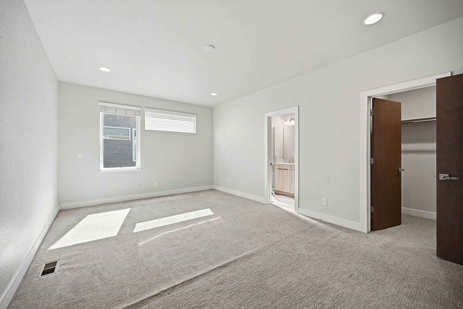 Baseboards Wall, Carpet, Drywall, Ensuite Bathroom, Natural Light, Recessed Lighting, Vent, Walk In Closet, Baseboards Wall, Carpet, Recessed Lighting, Vent