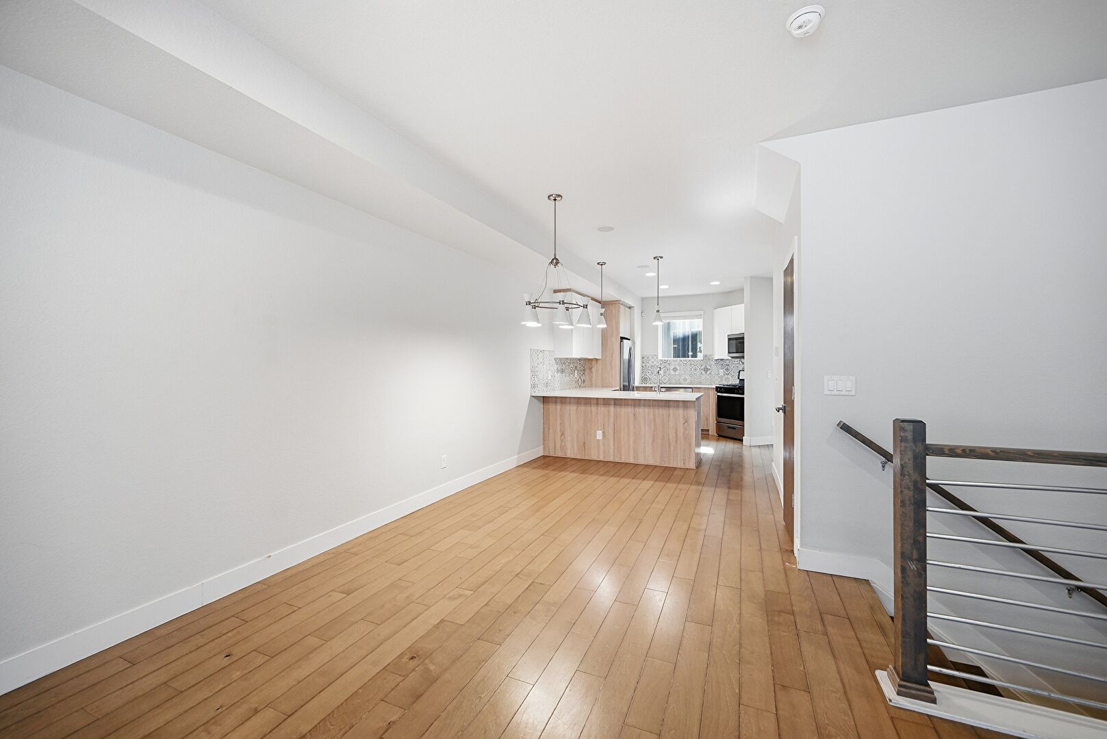 Baseboards Wall, Drywall, Flat Panel Cabinets, Kitchen Bar, Kitchen Peninsula, Natural Light, Pendant Lighting, Smoke Carbon Monoxide Detector, Wood Finish Floor, Opens To Living Area