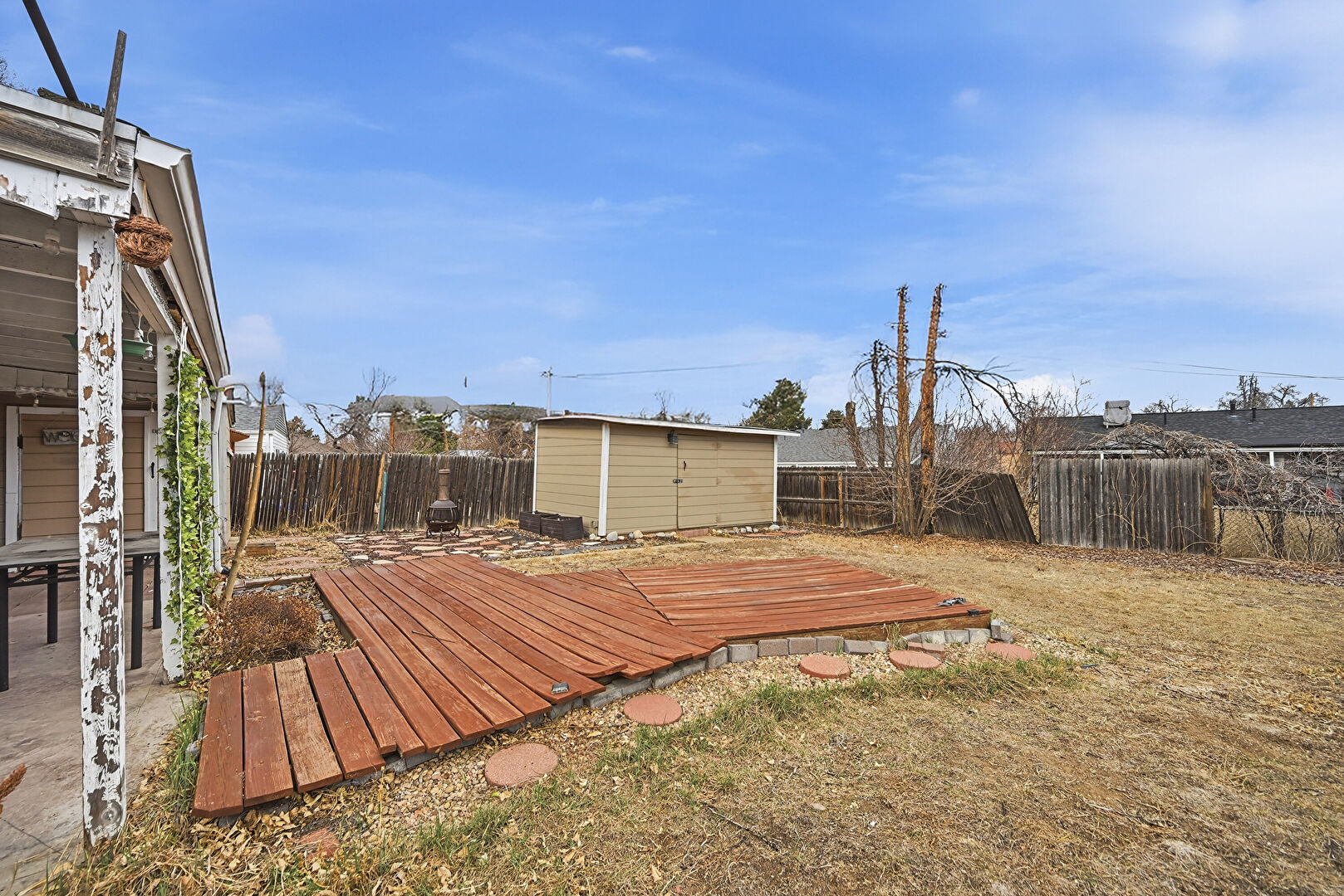 Deck, Lawn, Outdoor Structure, Patio, Shed, Fence