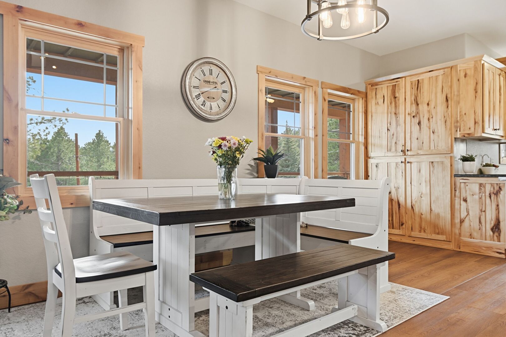 Baseboards Wall, Cathedral Ceiling, Ceiling Fan, Drywall, High Ceiling, Natural Light, Notable Chandelier, Recessed Lighting, Skylight, Vaulted Ceiling, Wood Finish Floor, L Shaped Kitchen, Wood Finish Floor