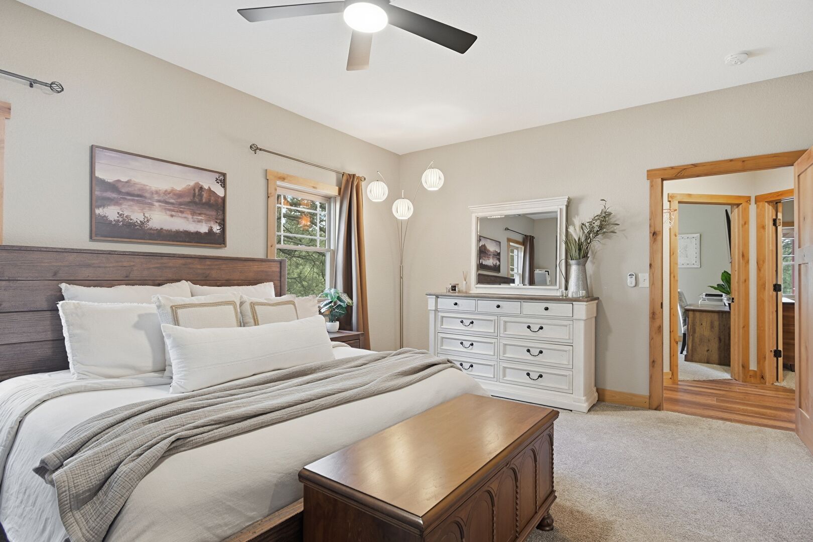 Baseboards Wall, Carpet, Ceiling Fan, Drywall, Natural Light, Office Area, Carpet, Ceiling Fan, Drywall, Natural Light, Smoke Carbon Monoxide Detector