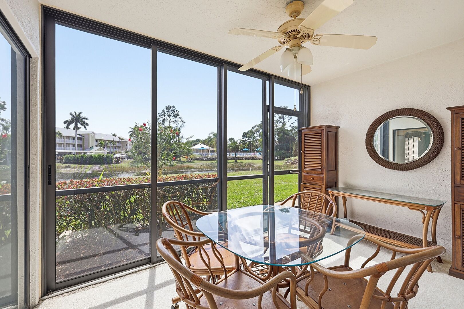 Ceiling Fan, Natural Light, Outdoor Dining Area, Sunroom, Water View, Waterfront, Natural Light, Sunroom