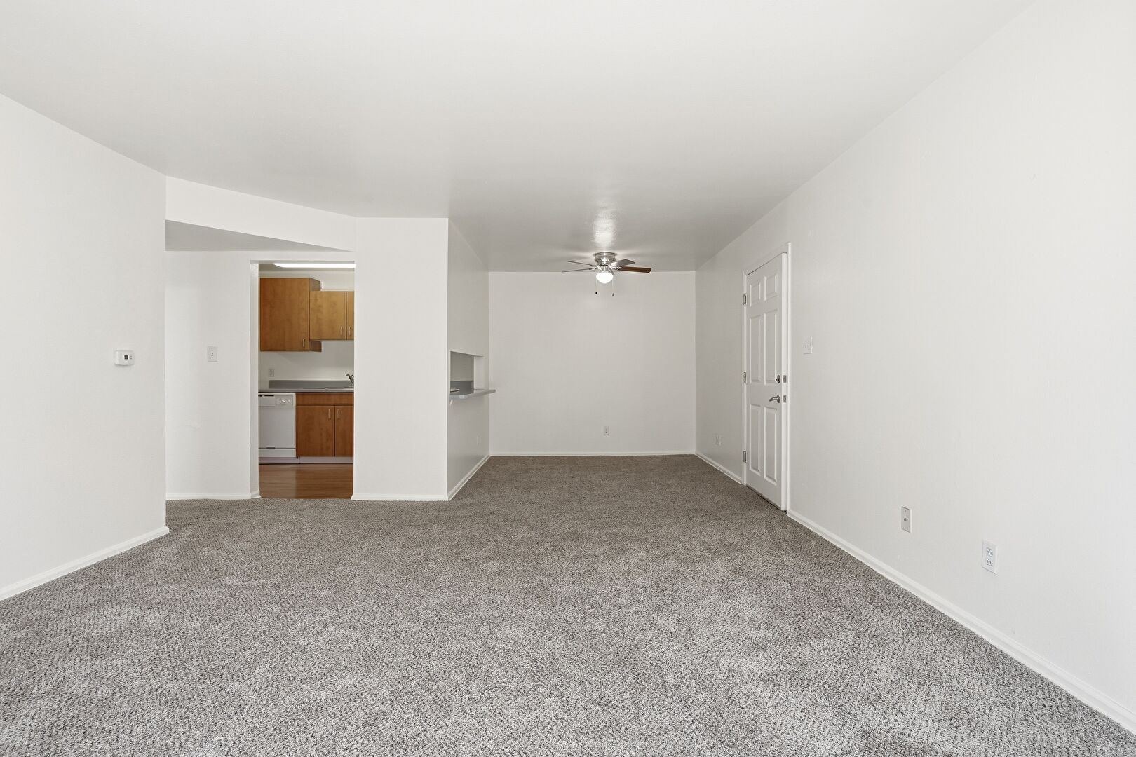 Baseboards Wall, Carpet, Drywall, Natural Light, Ceiling Fan, Vent