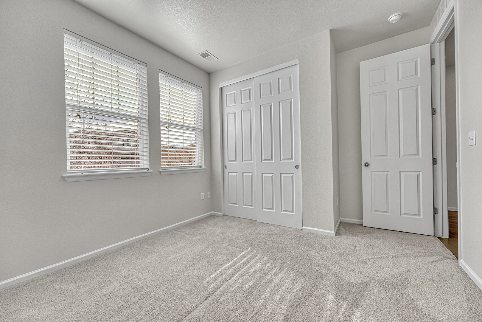 Baseboards Wall, Carpet, Closet, Drywall, Natural Light, Smoke Carbon Monoxide Detector, Textured Ceiling, Textured Wall, Vaulted Ceiling, Baseboards Wall, Natural Light, Vent