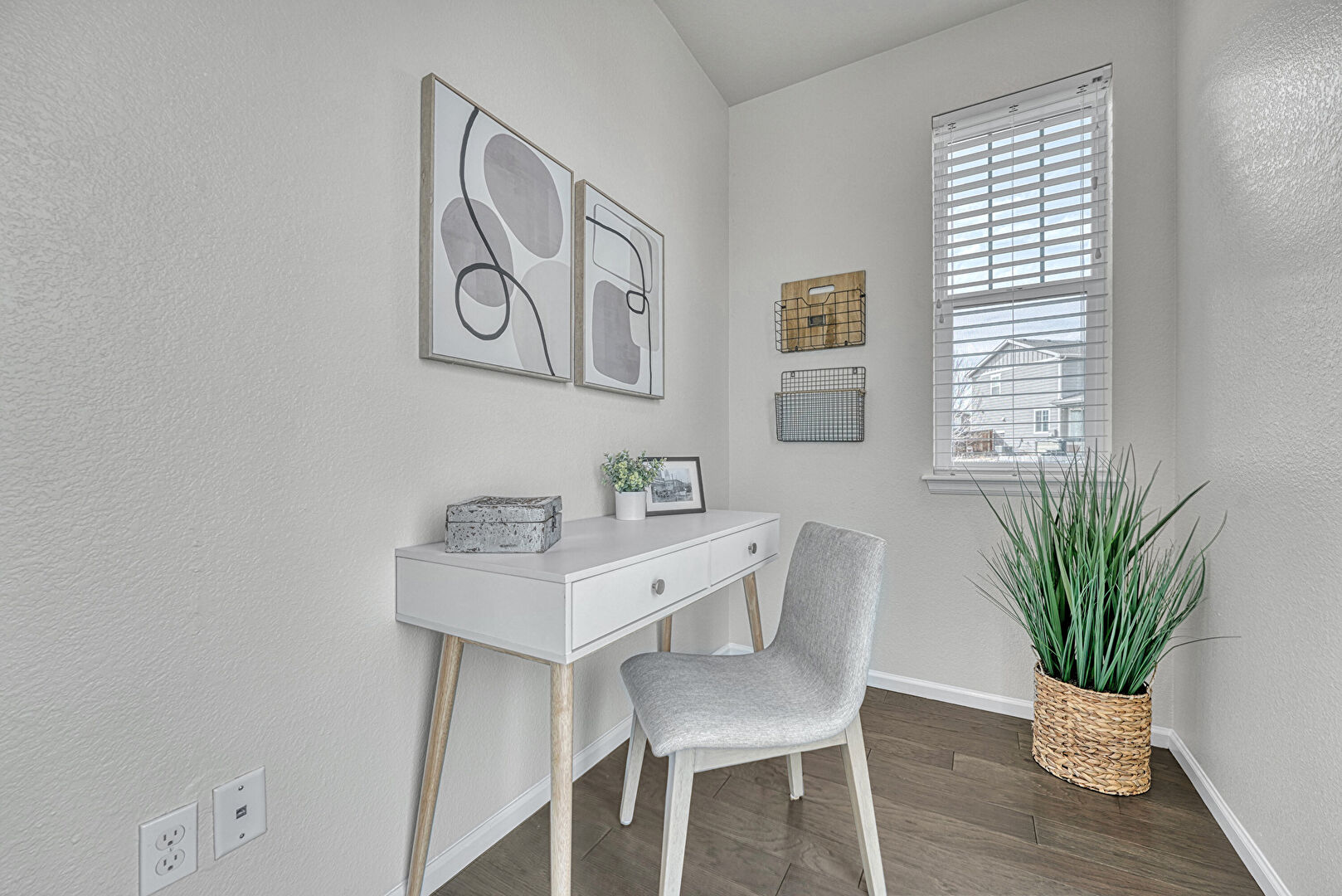 Baseboards Wall, Natural Light, Office Area, Wood Finish Floor, Textured Wall
