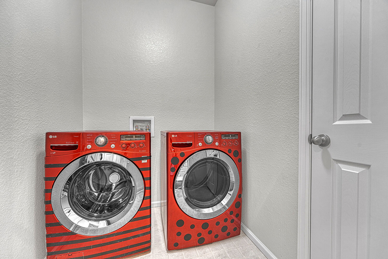 Laundry, Textured Wall, Tile Floor, Washer Hookup, Baseboards Wall