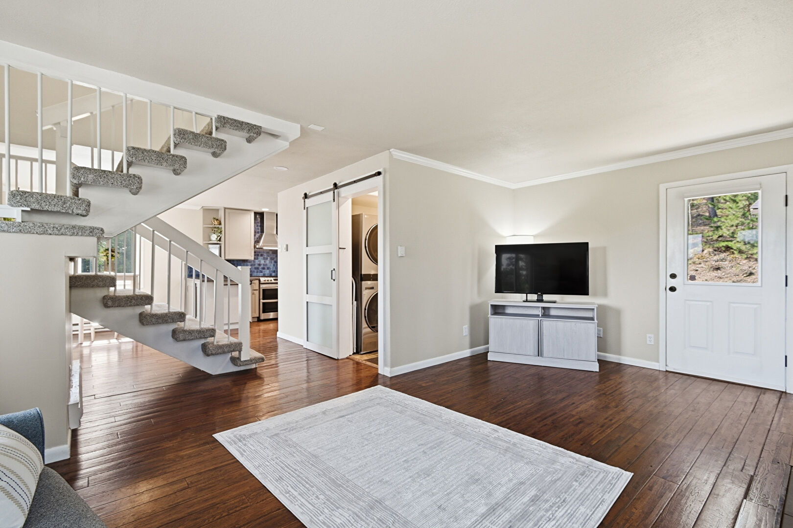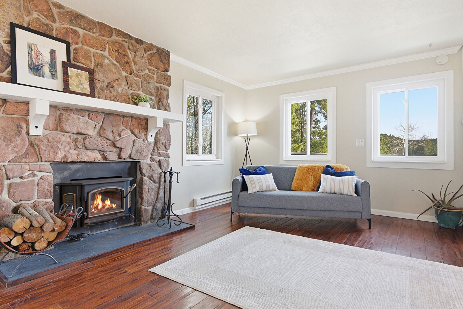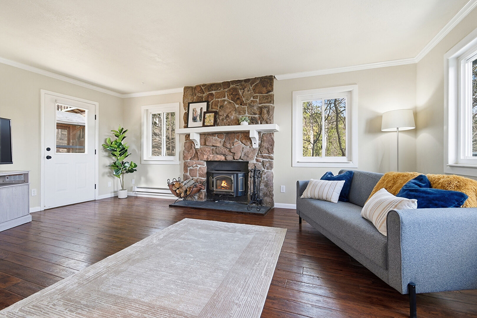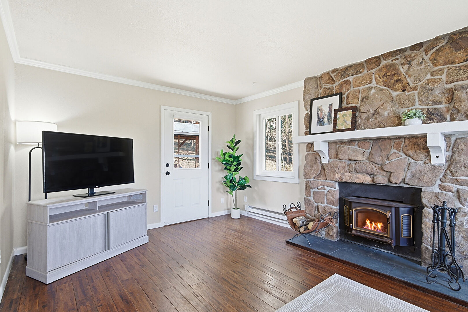 Barn Door, Baseboard Radiator, Baseboards Wall, Crown Molding, Drywall, Fireplace, Laundry, Natural Light, Smoke Carbon Monoxide Detector, Stairs, Wood Finish Floor, Wood Stove, Baseboard Radiator, Baseboards Wall, Drywall, Fireplace, Wood Finish Floor