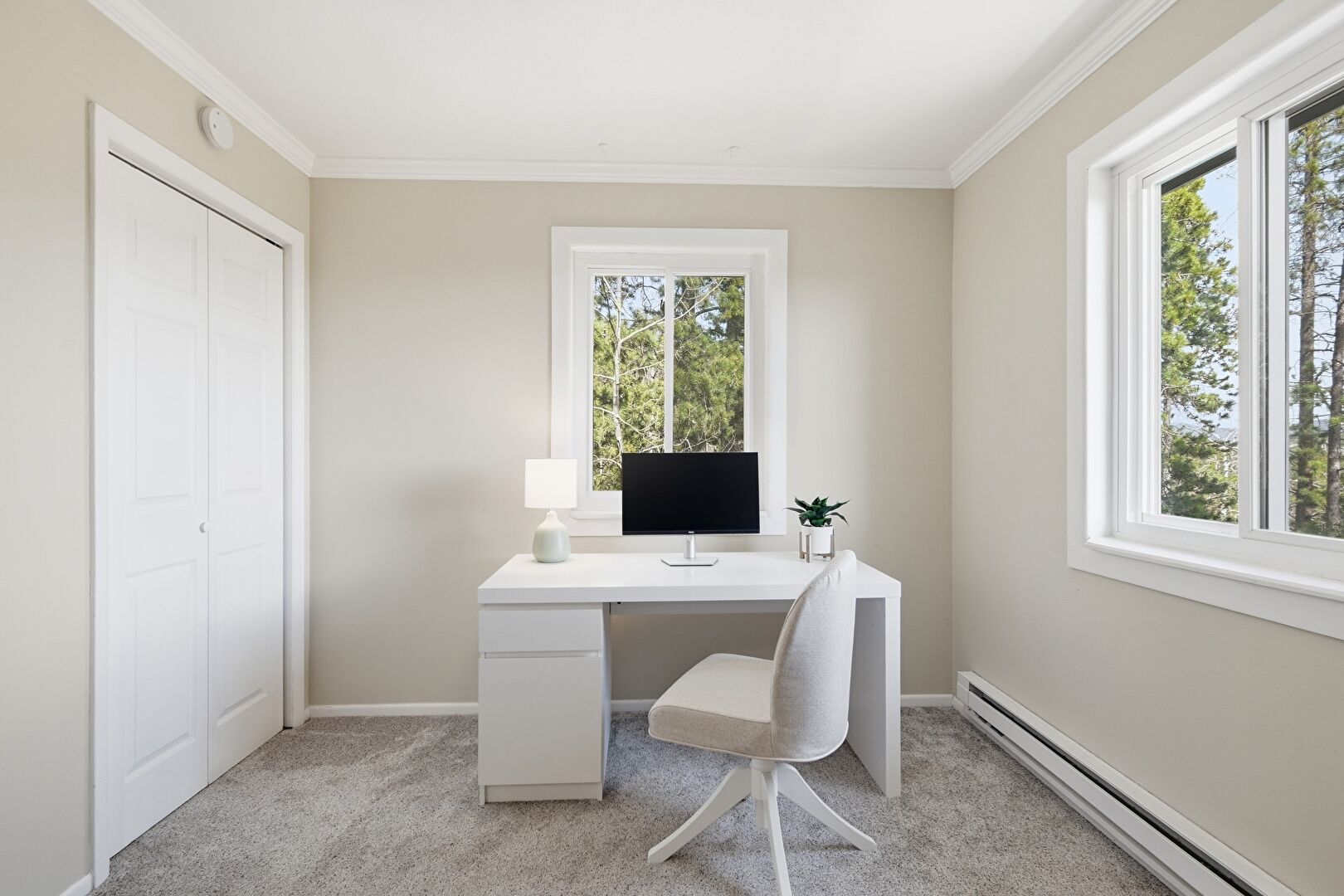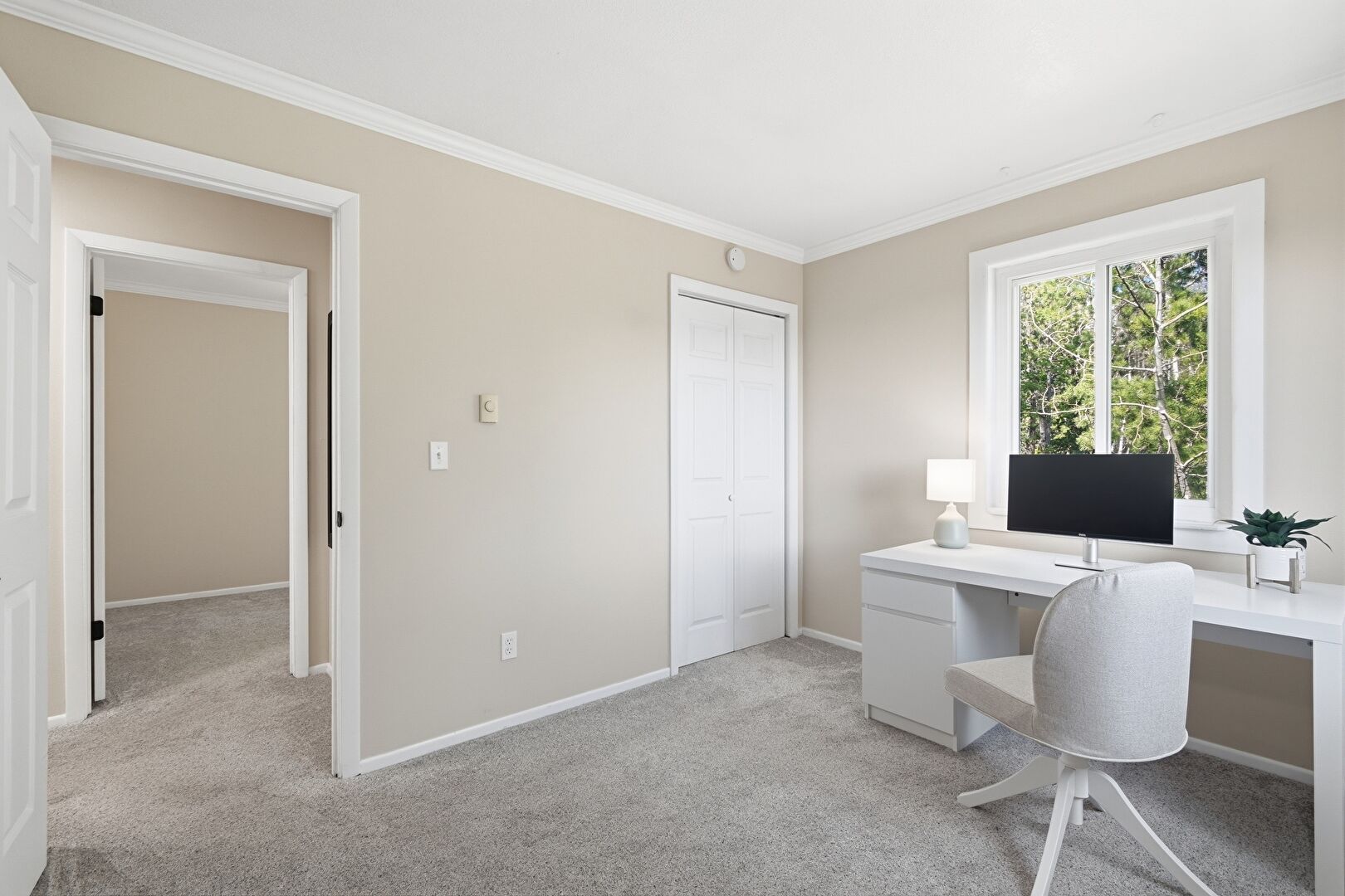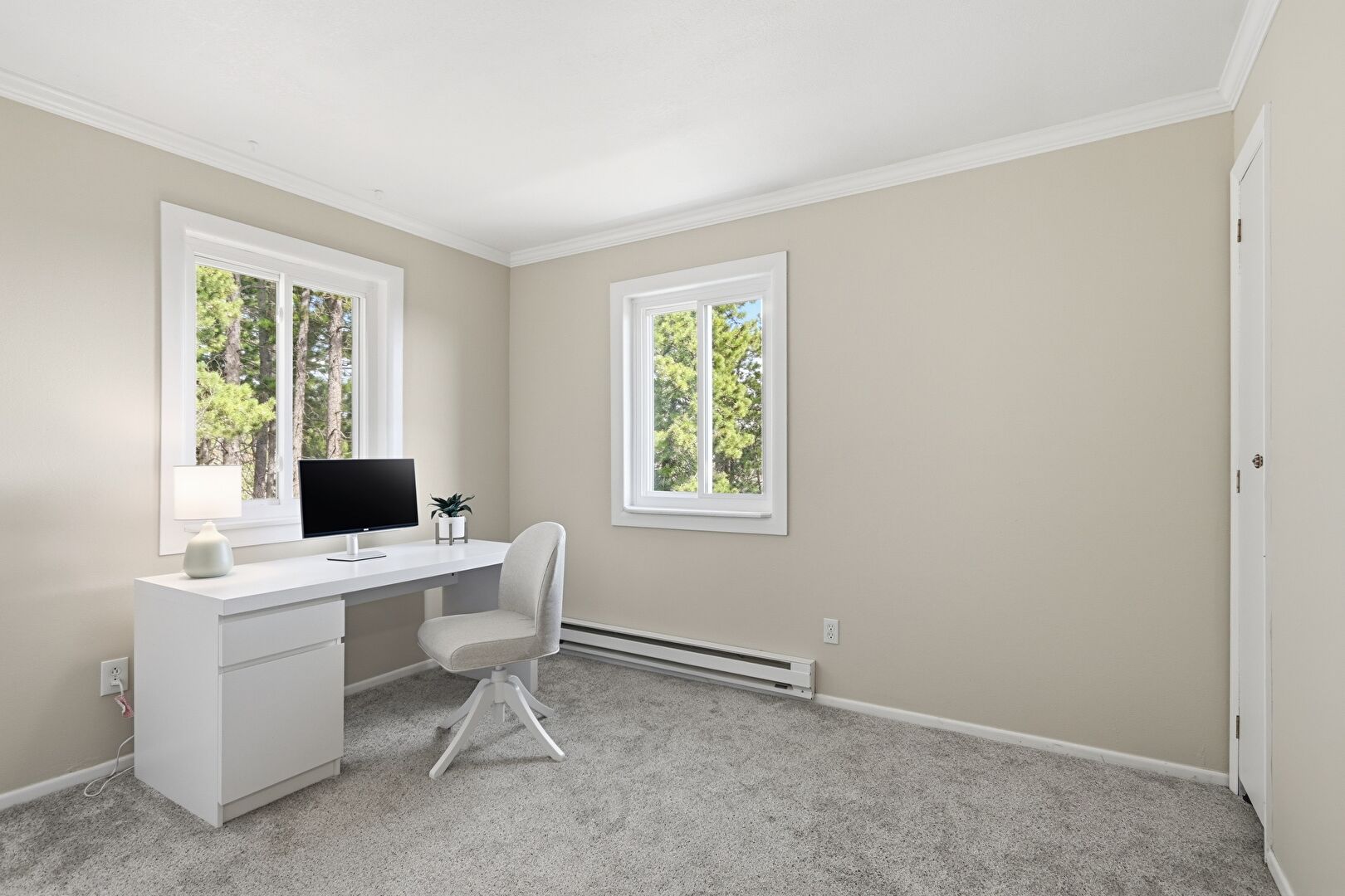 Access To Exterior, Baseboard Radiator, Baseboards Wall, Carpet, Closet, Crown Molding, Drywall, Ensuite Bathroom, Forest View, Natural Light, Office Area, Smoke Carbon Monoxide Detector, Baseboard Radiator, Baseboards Wall, Crown Molding, Natural Light, Office Area