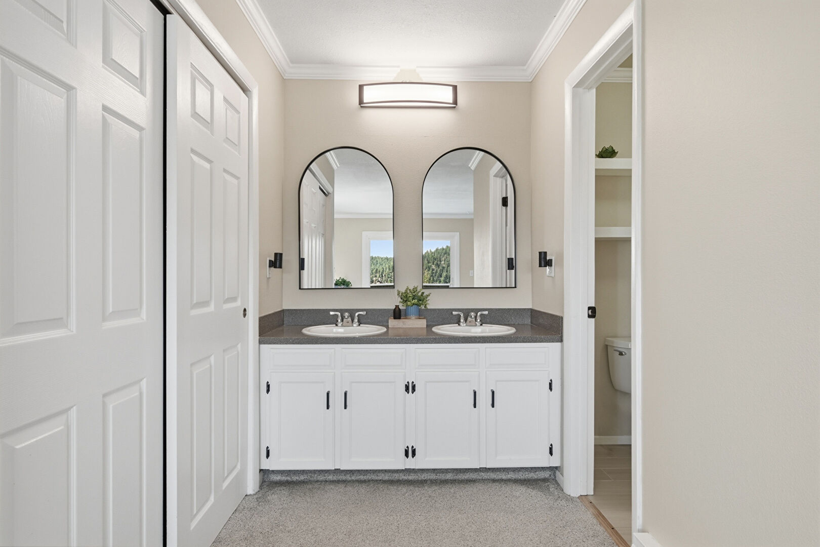 Baseboard Radiator, Baseboards Wall, Closet, Combined Bath Shower, Crown Molding, Double Vanity, Drywall, Full Bathroom, Half Bathroom, Laundry, Natural Light, Recessed Lighting, Stone Finish Floor, Vanity, Water Closet, Wood Finish Floor, Carpet, Crown Molding, Drywall, Laundry, Natural Light, Vanity