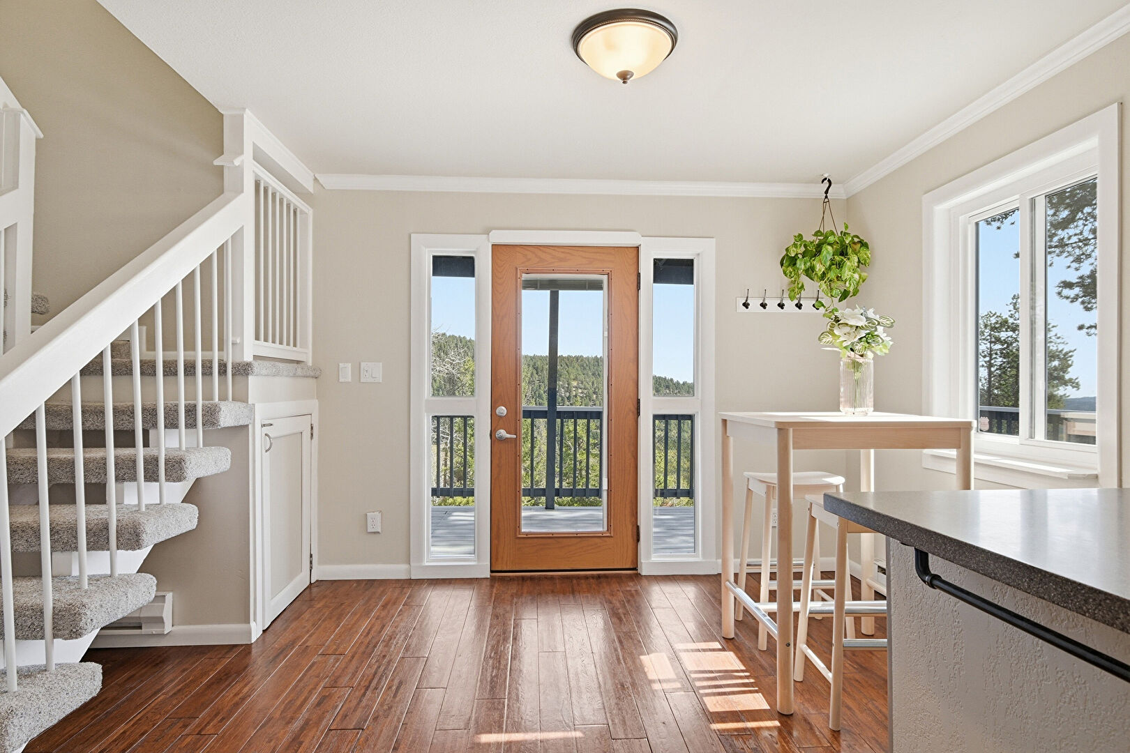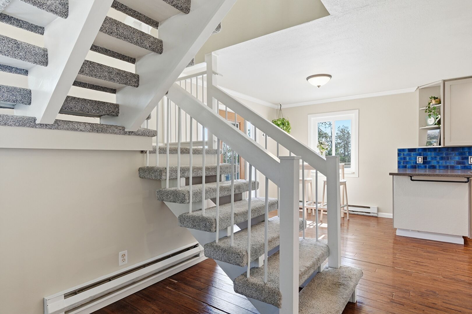 Baseboards Wall, Crown Molding, Drywall, Natural Light, Stairs, Wood Finish Floor