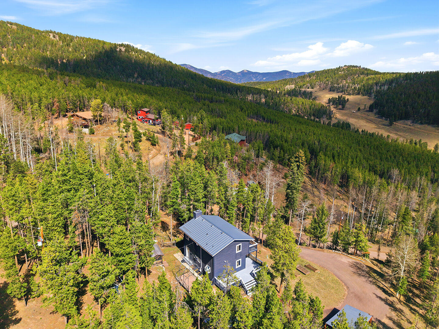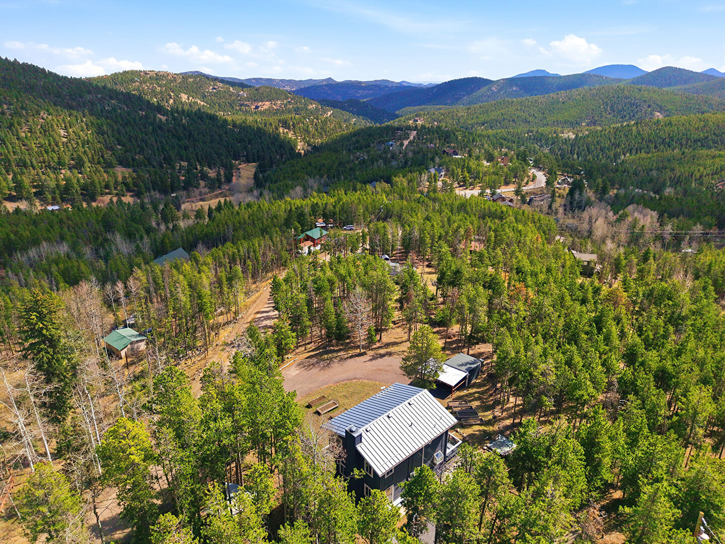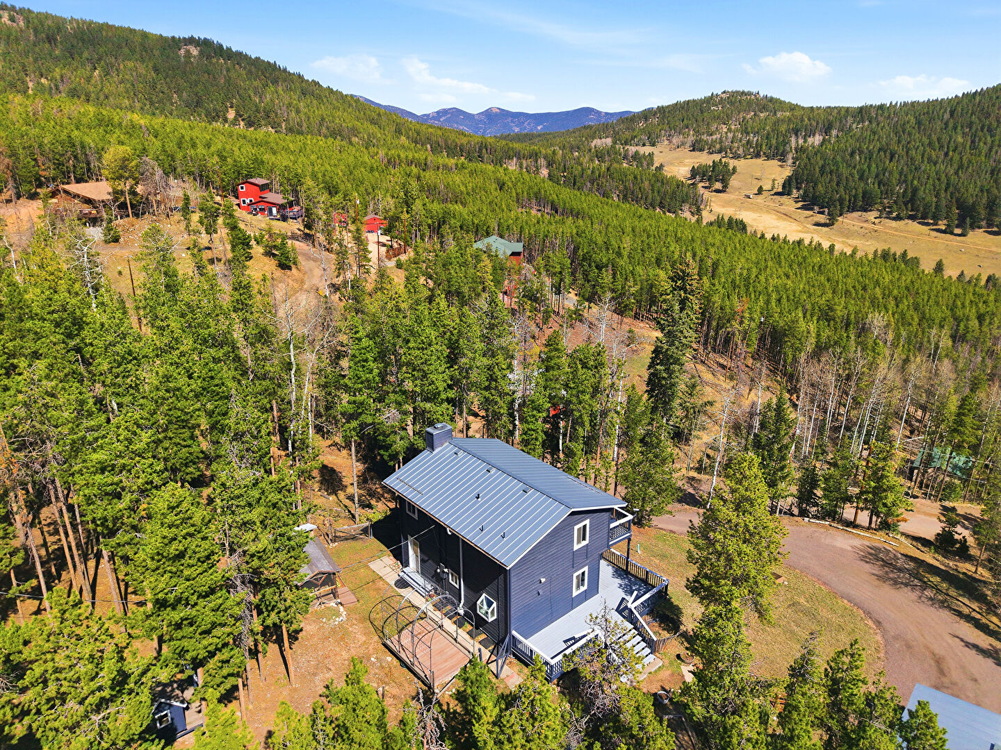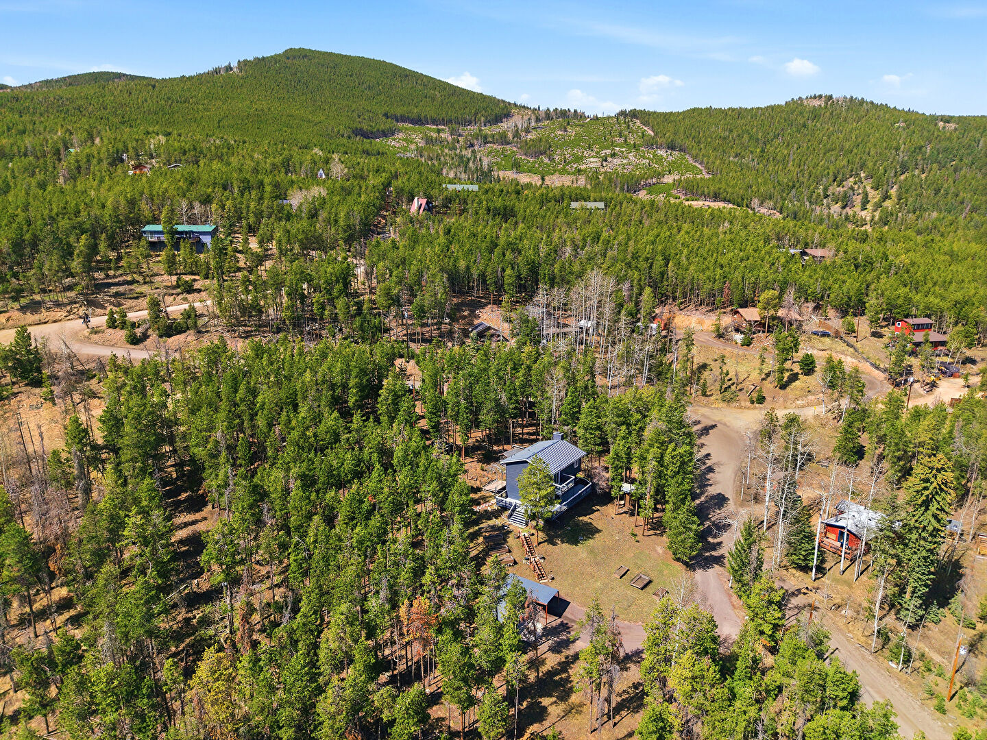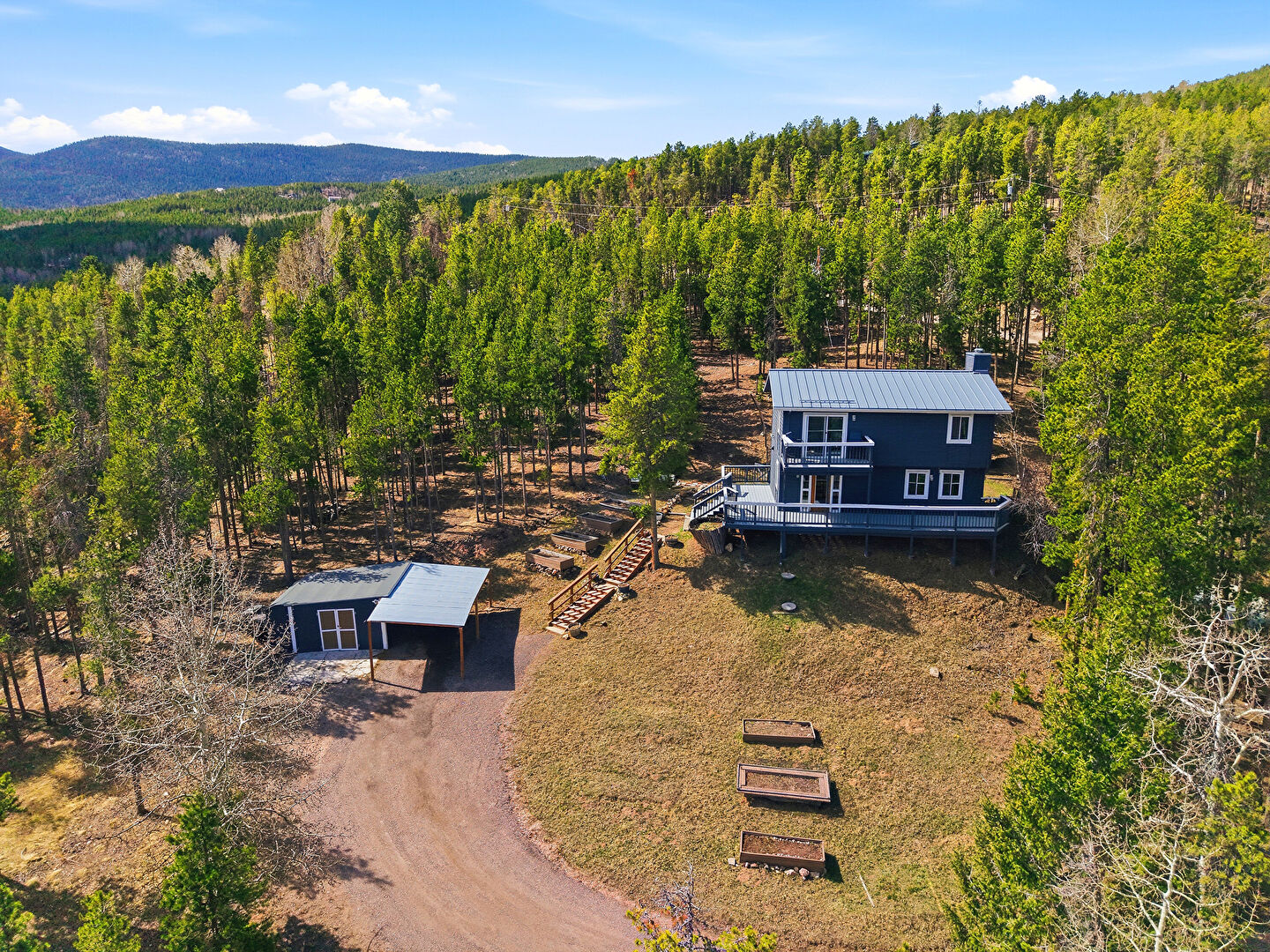 Chimney, Corrugated Roof, Deck, Forest View, Horizontal Siding, Lawn, Metal Roof, Stairs, Woods View, Balcony, Downspout, Metal Roof, Standing Seam Roof