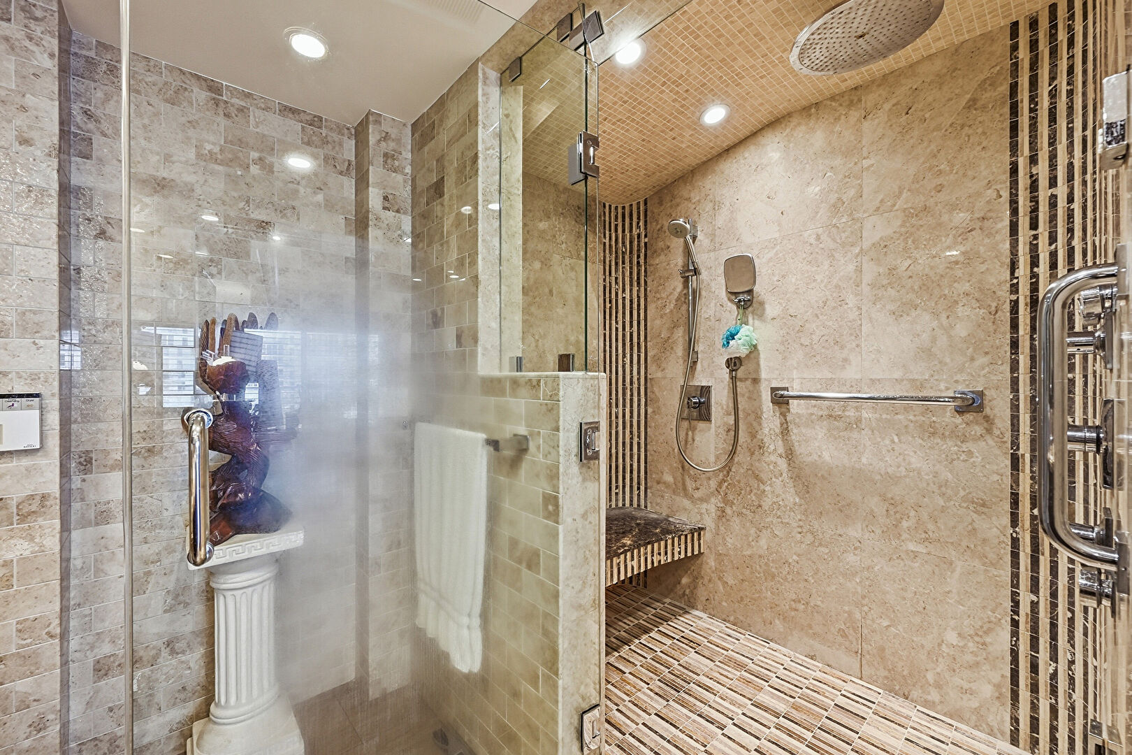 Ceiling Fan, Crown Molding, Drywall, Floor Ceiling Windows, Natural Light, Recessed Lighting, Tile Floor, Tray Ceiling, Vent, Water View, Ceiling Fan, Floor Ceiling Windows, Recessed Lighting, Tile Floor, Vent