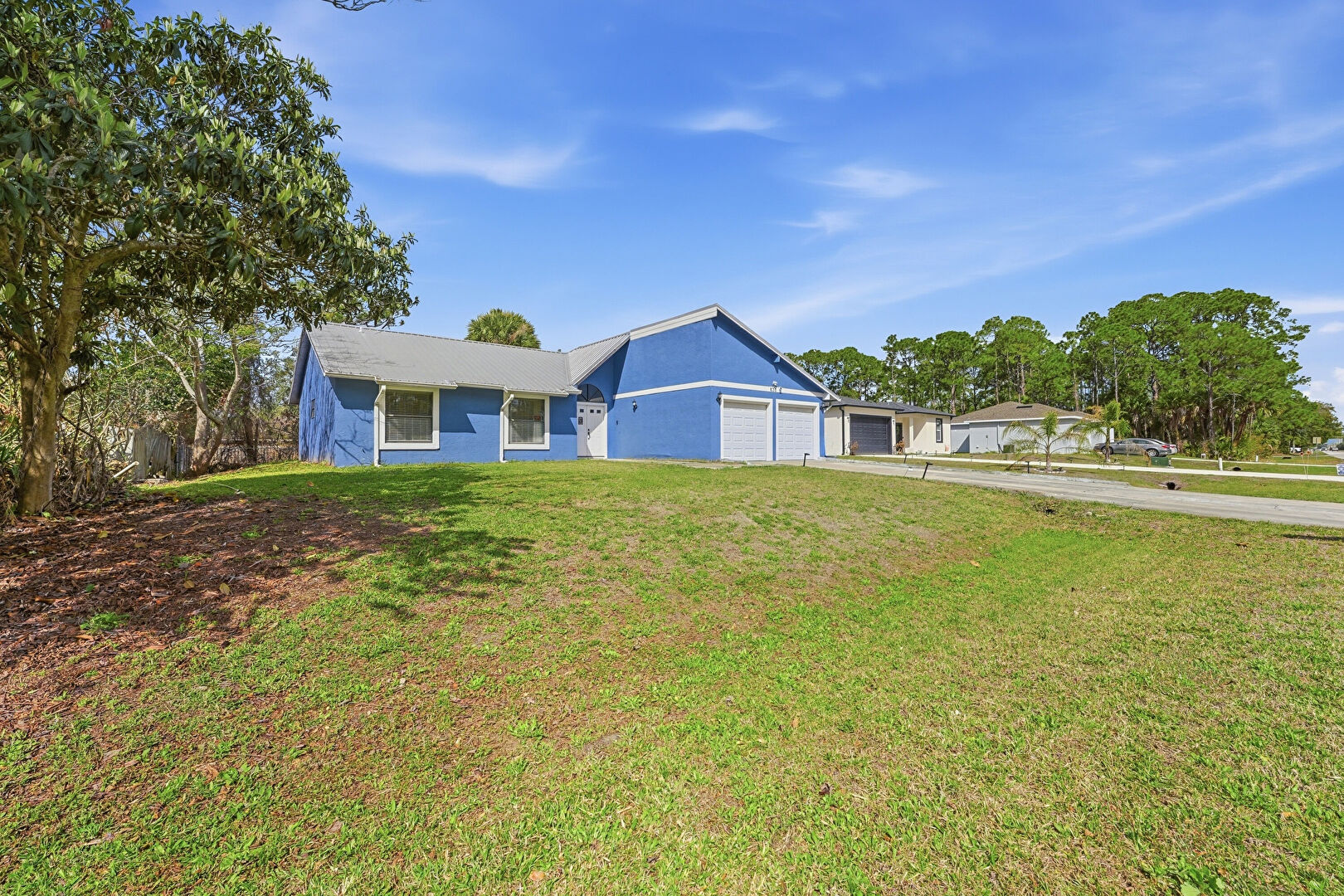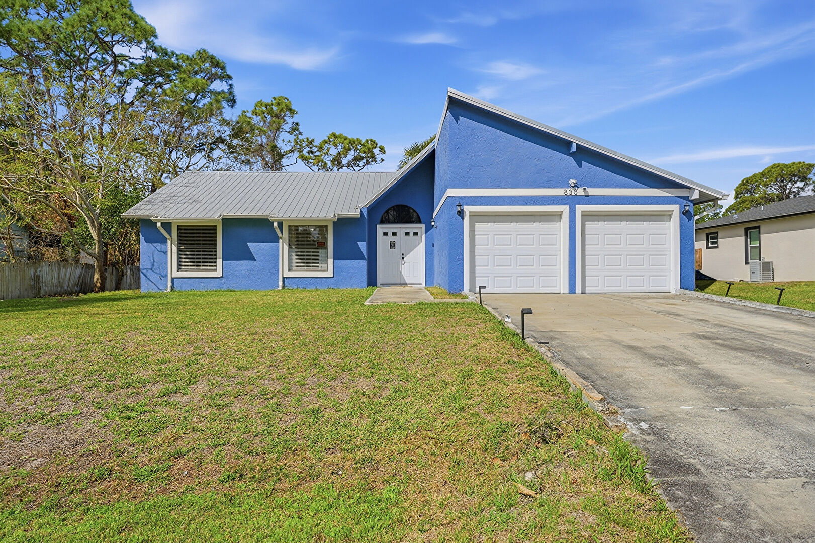 Central Ac, Chimney, Corrugated Roof, Downspout, Driveway, Fence, Gutters, Lawn, Metal Roof, Stucco Siding, Woods View, Chimney, Downspout, Driveway, Lawn, Stucco Siding