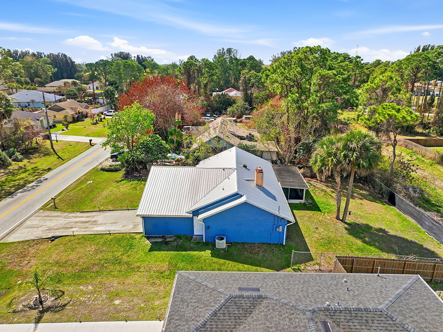 Central Ac, Chimney, Corrugated Roof, Downspout, Fence, Gutters, Lawn, Metal Roof, Sunroom, Lawn, Sunroom