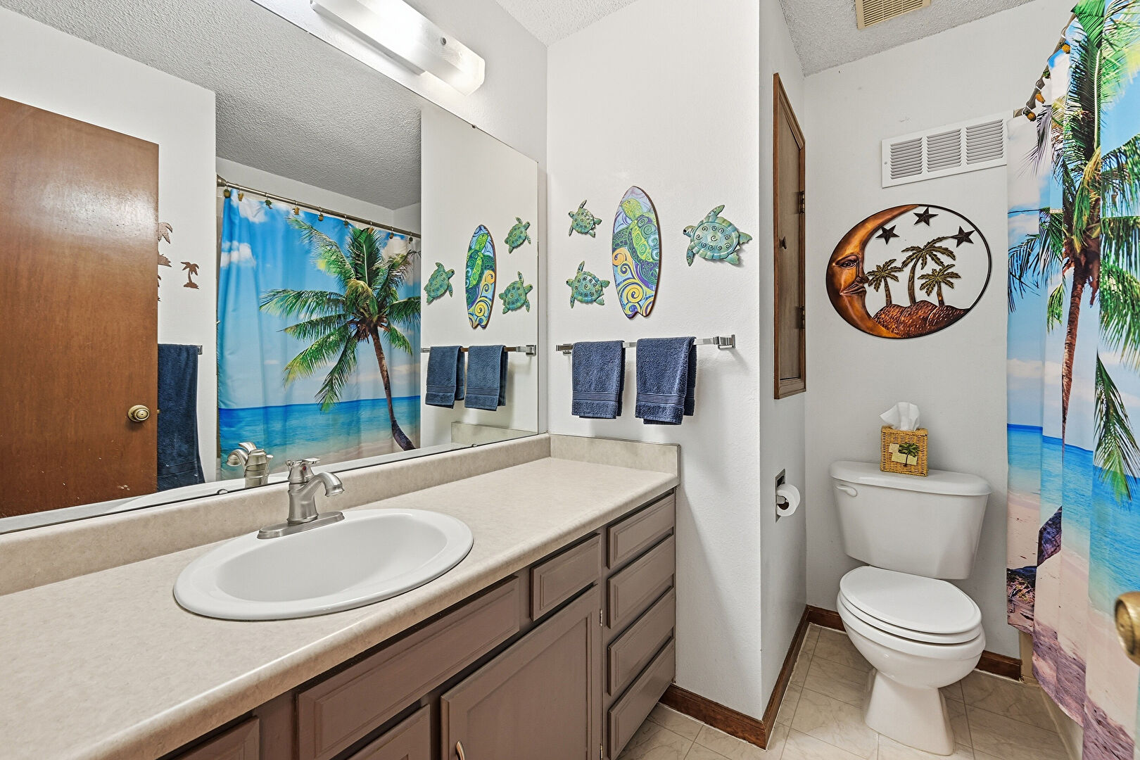Baseboards Wall, Drywall, Full Bathroom, Textured Ceiling, Tile Floor, Vanity, Vent, Full Bathroom, Textured Ceiling
