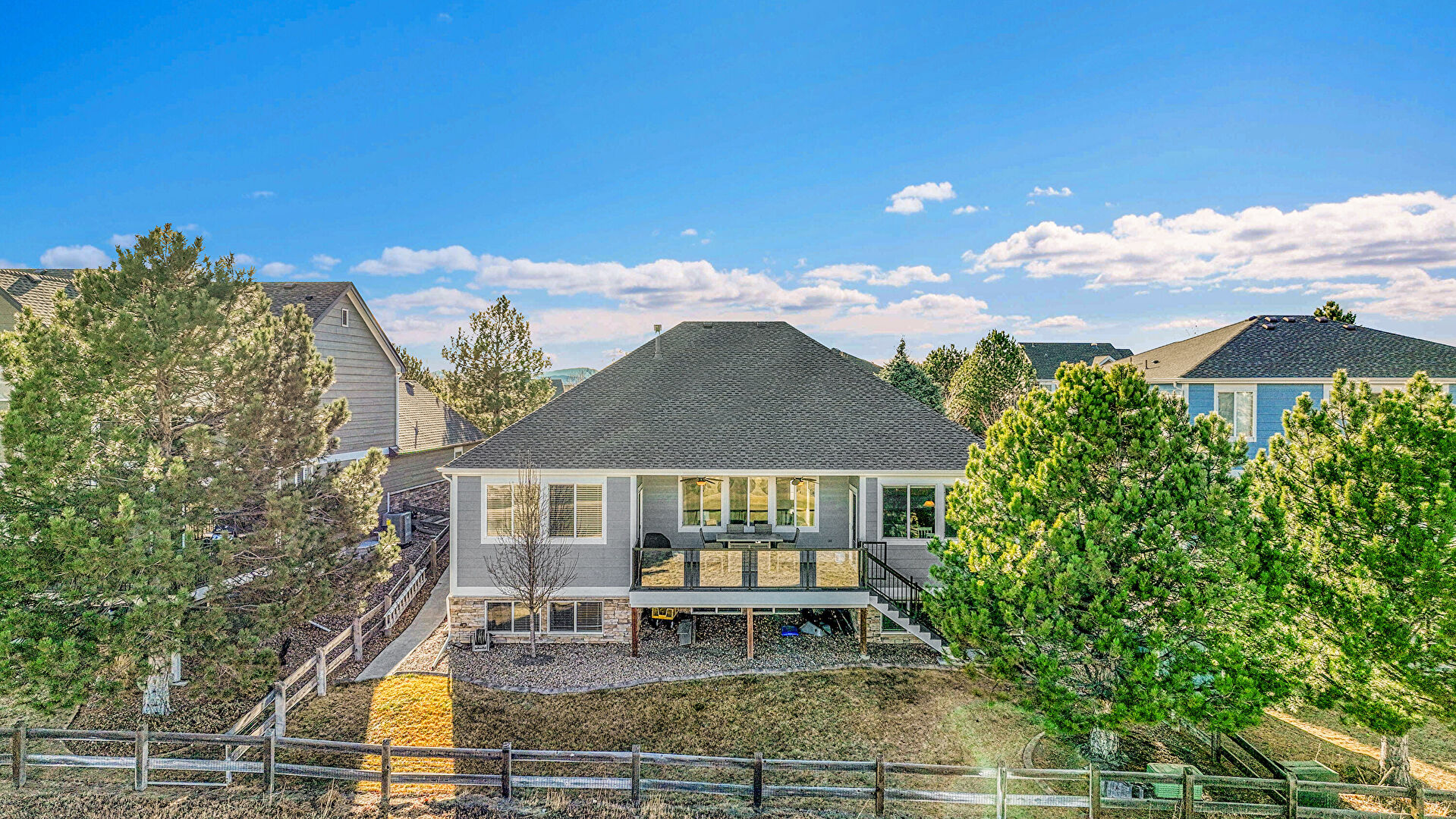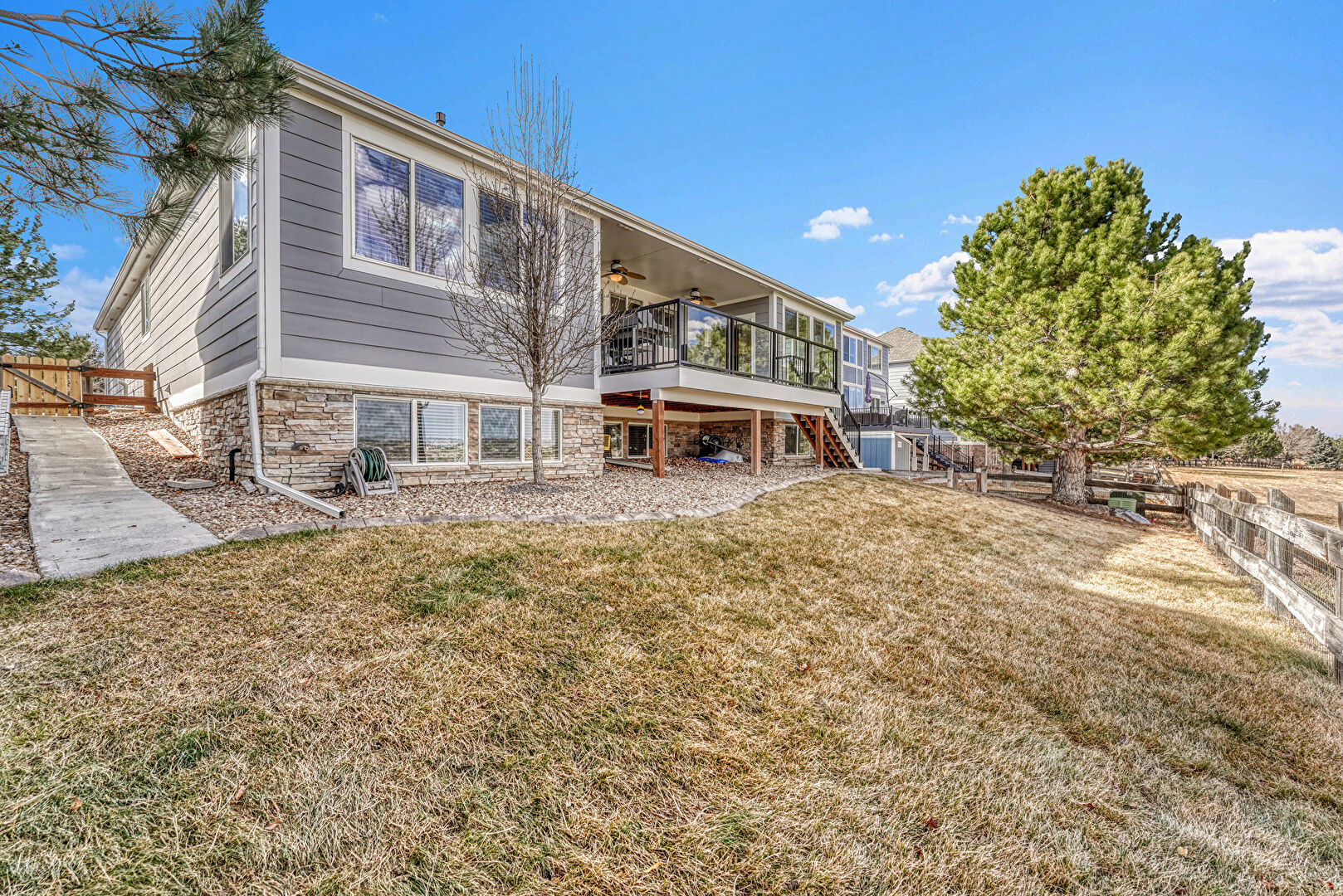 Ceiling Fan, Deck, Downspout, Driveway, Fence, Golf Course View, Gutters, Lawn, Mountain View, Residential View, Shingle Roof, Stairs, Stone Siding, Fence, Golf Course View, Horizontal Siding, Patio, Residential View, Shingle Roof