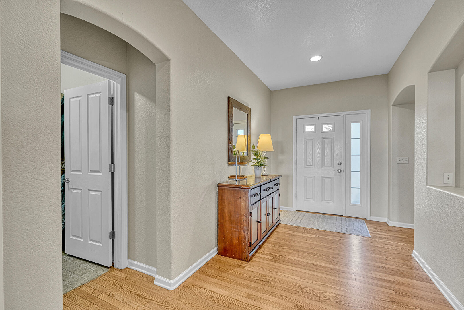 Arched Walkways, Baseboards Wall, Natural Light, Recessed Lighting, Textured Ceiling, Textured Wall, Wood Finish Floor, Recessed Lighting, Wood Finish Floor