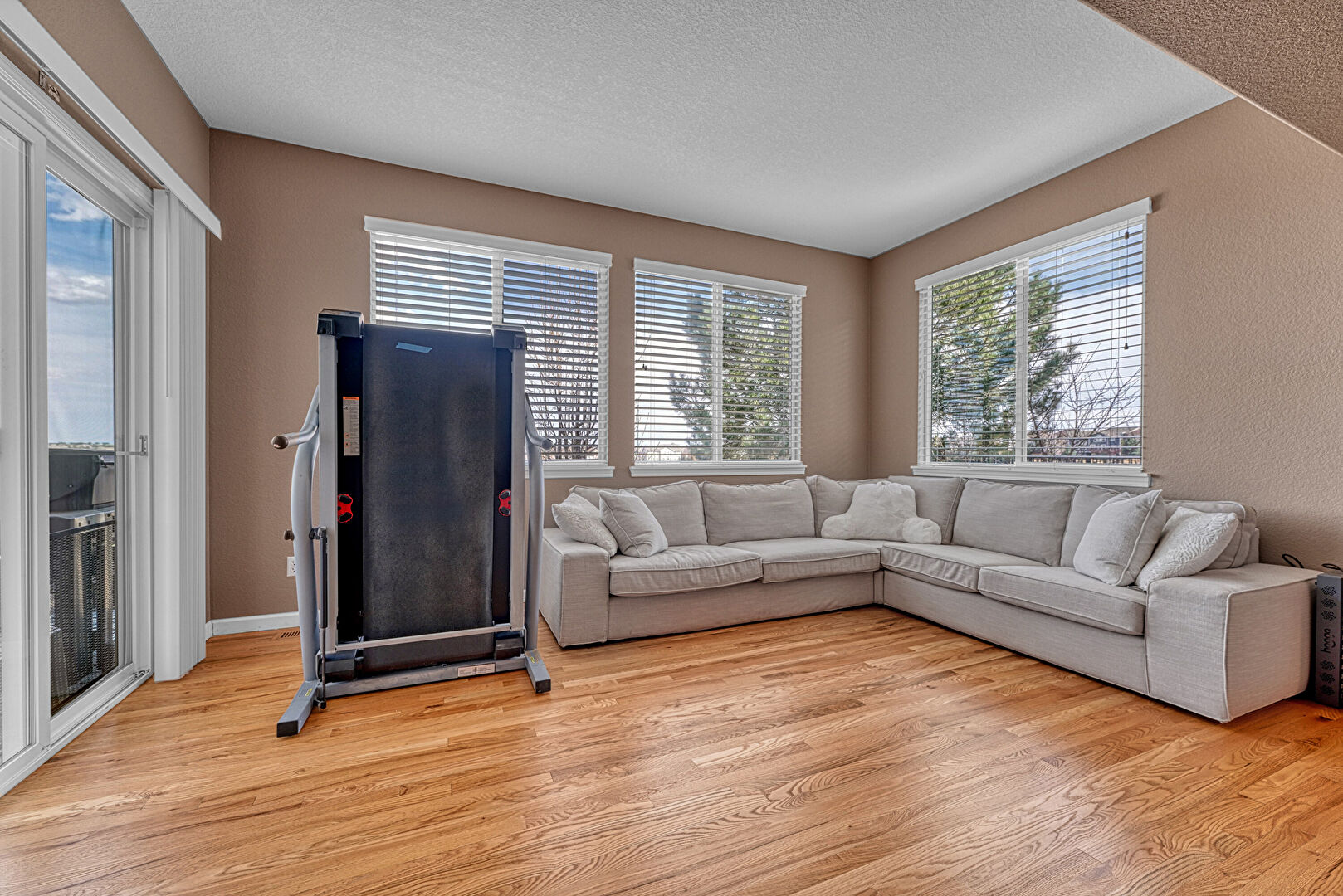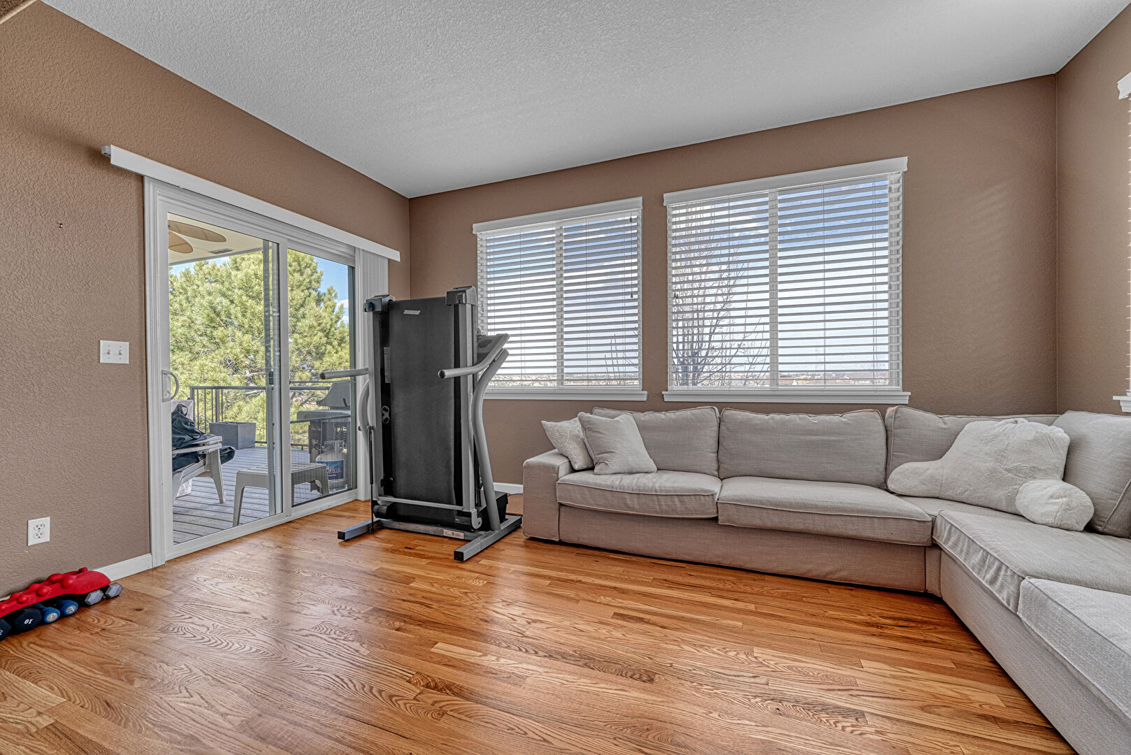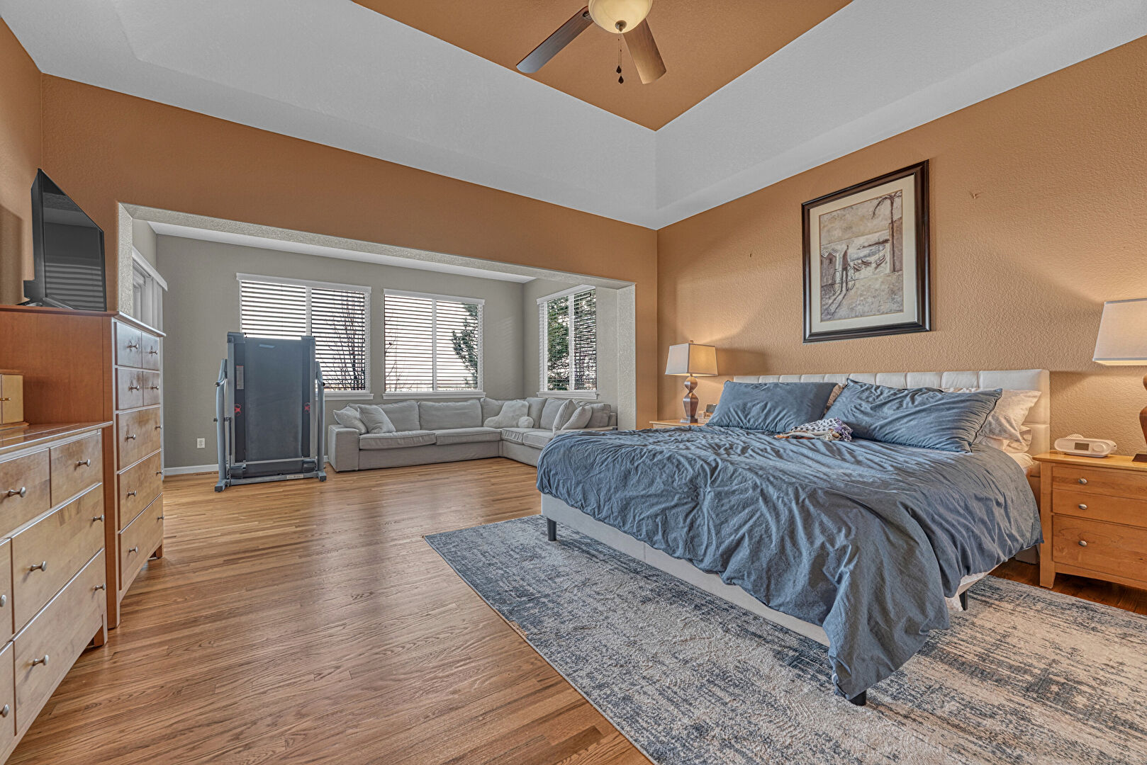Access To Exterior, Baseboards Wall, Ceiling Fan, Drywall, Natural Light, Tray Ceiling, Vent, Wood Finish Floor, Baseboards Wall, Drywall, Textured Wall, Wood Finish Floor