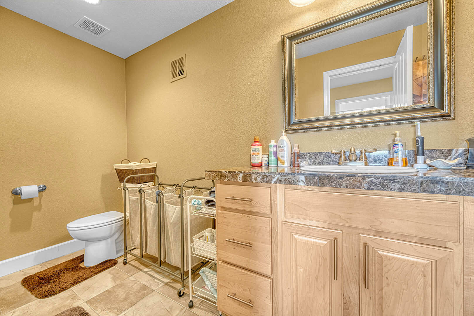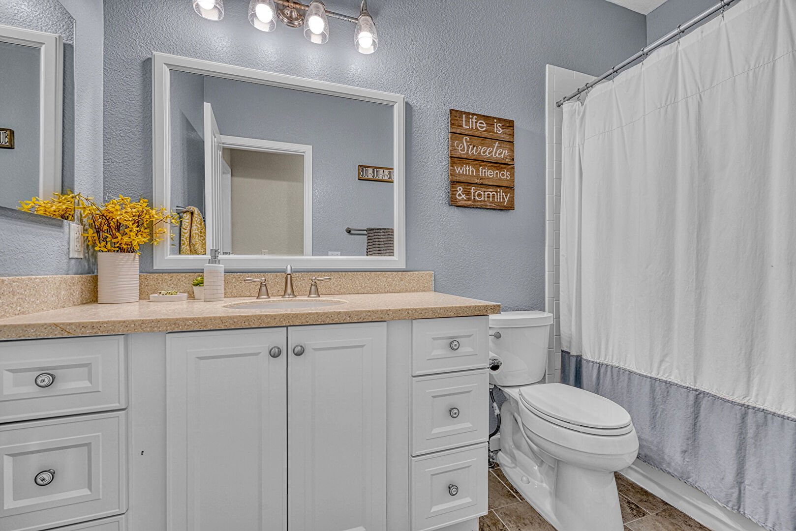 Combined Bath Shower, Half Bathroom, Textured Wall, Vanity, Vent, Baseboards Wall, Full Bathroom
